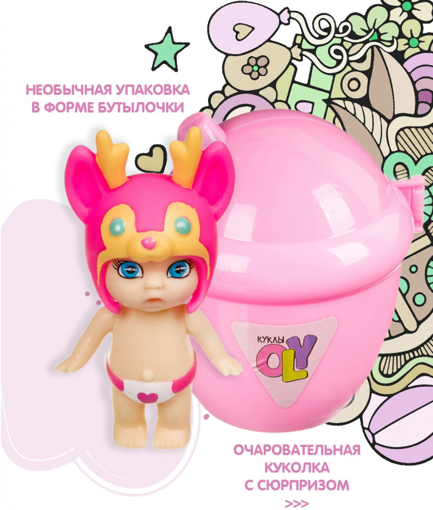 💳 Оплатить за товар можно при получении 🇰🇿 Есть бесплатная доставка по Казахстану 🎁 Копите бонусы с каждой покупки Серия: Куклы OLY Куколка OLY с шапочкой в виде оленя и аксессуарами в поильнике. |