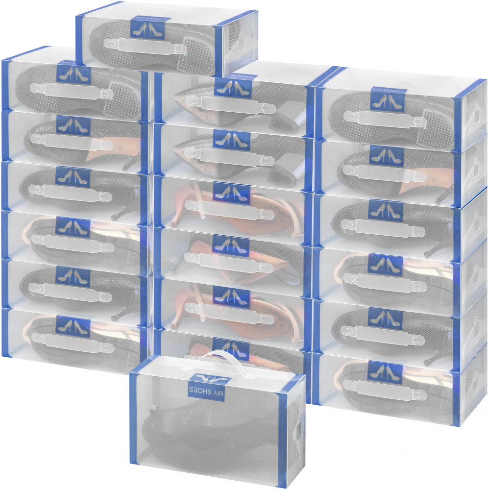 Очень удобные и компактные. Картонные коробки с обувью занимали в три раза больше места. Этот размер подходит только для обуви размеров 36-38. Размеры побольше скорее всего не поместятся.