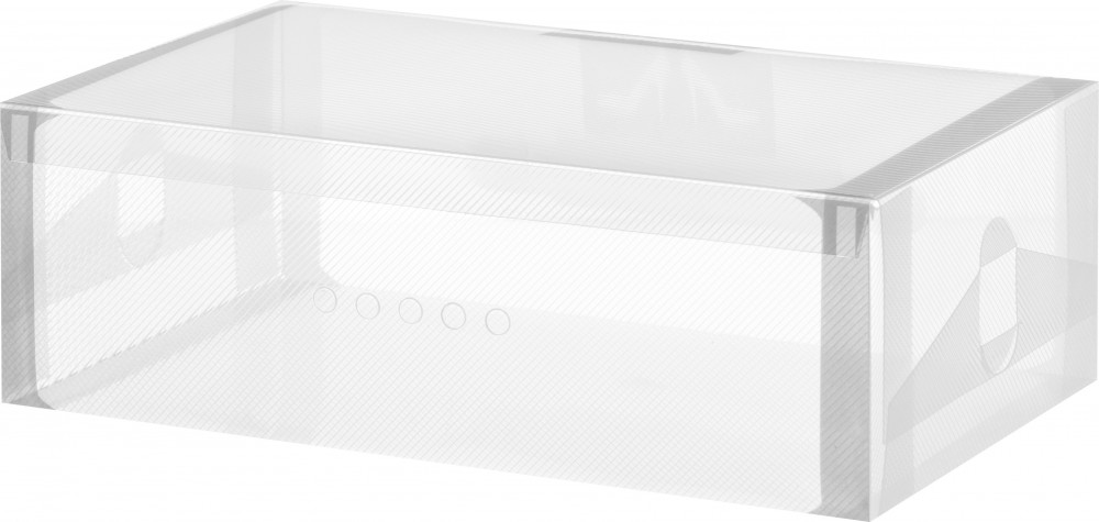 Очень удобные коробки для хранения, размер 39-40 хорошо ложится, обувь помассивнее сложно уместить,пластик тонковат, но для функции хранения (сложил-убрал подальше) вполне годится.