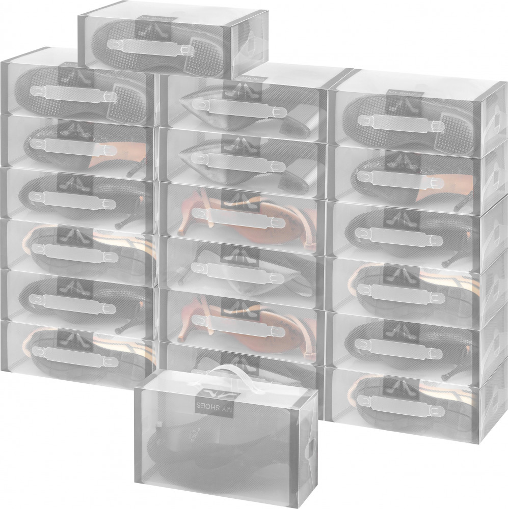 Очень удобные и компактные. Картонные коробки с обувью занимали в три раза больше места. Этот размер подходит только для обуви размеров 36-38. Размеры побольше скорее всего не поместятся.