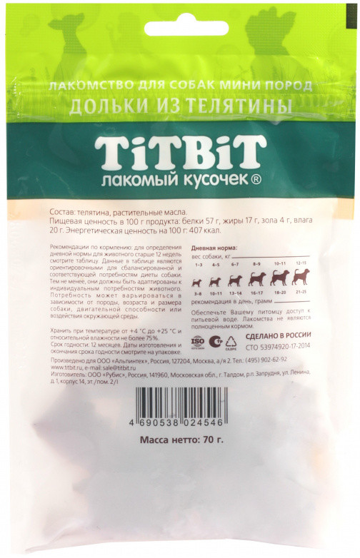 TiTBiT Лакомство для собак мини пород «Дольки из телятины»