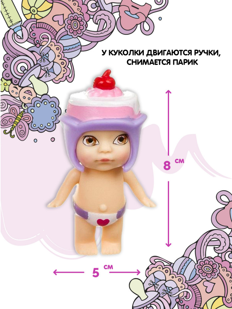 Куколка OLY с шапочкой в виде пирожного с вишенкой и аксессуарами в чемодане с кодовом замком.
