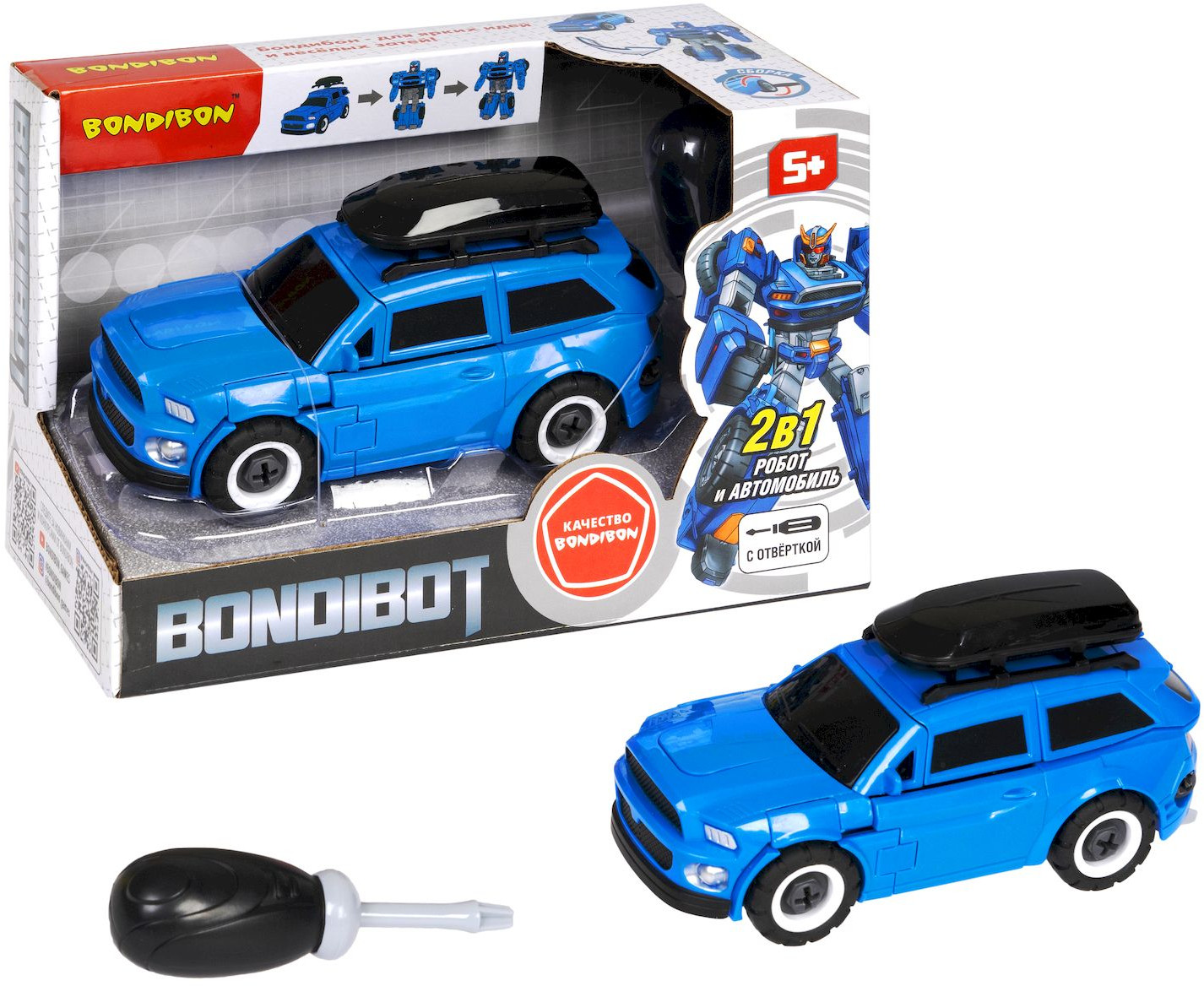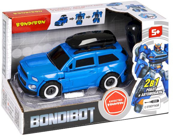 Трансформеры способствуют адаптации ребенка к современным жизненным реалиям, будят интерес к техническим новинкам и программированию. Профессиональными программистами захотят стать и мальчики, и девочки! Робот «Bonibot» 2в1 робот-автомобиль с отвёрткой, джип синий с багажником отличный подарок маленьким инженерам-волшебникам. Благодаря точному исполнению всех деталей и их качественному соединению, трансформацию BONDIBOT можно производить несчётное количество раз. Размер автомобиля: 17 × 7 × 6 см, размер робота: 16 × 11 × 5 см.