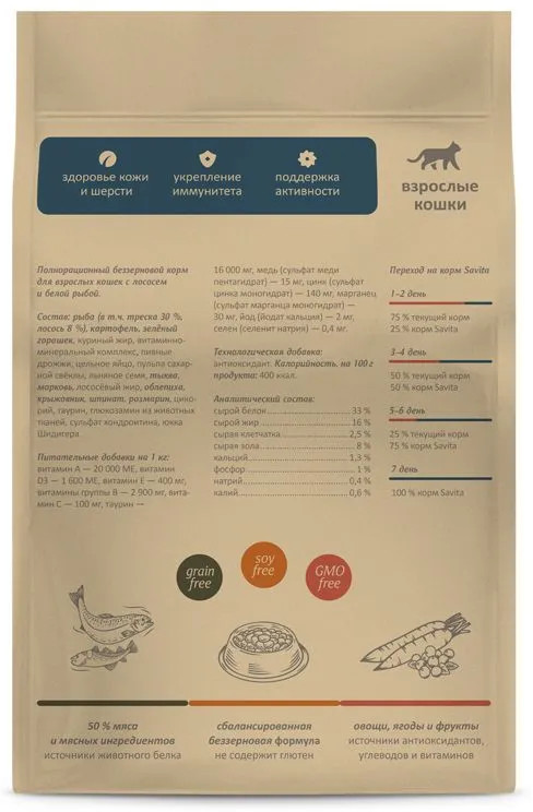 Savita Корм для кошек с лососем и белой рыбой
