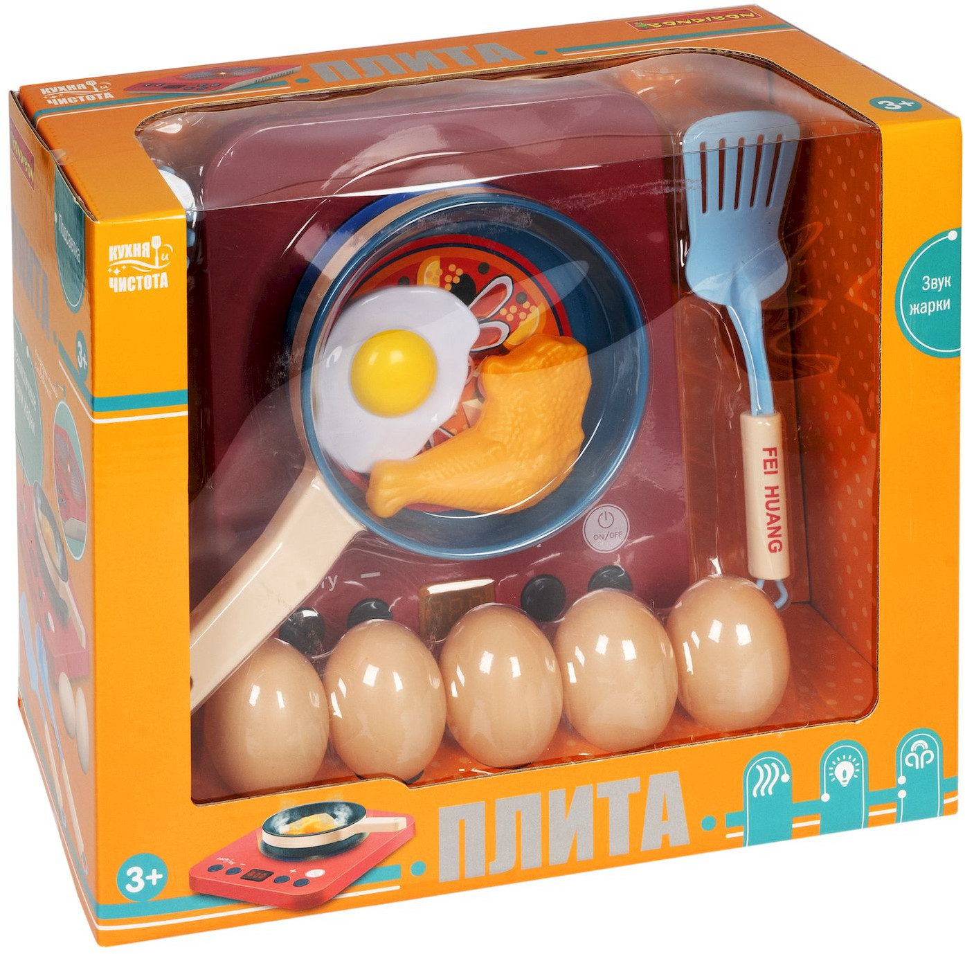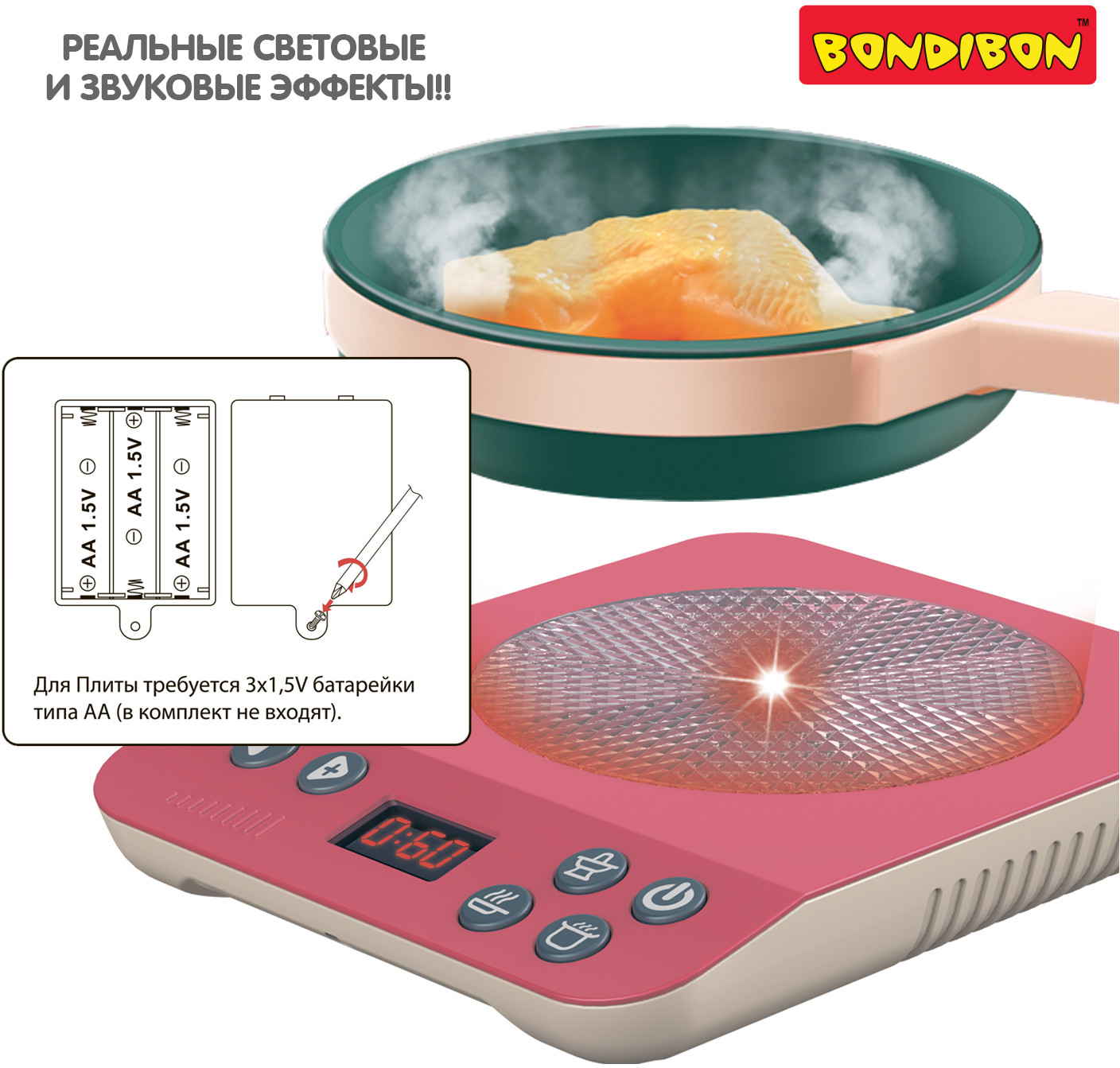 Кухня для маленьких детей — это волшебное место! Ведь именно тут из обычных продуктов получаются вкусные кулинарные шедевры. С помощью игрового набора «Плита» от «Bondibon» вы познакомите ребёнка с тем, как можно легко и весело готовить разные блюда. К тому же, ребёнок вряд ли будет тянуться к настоящей плите, если у него будет яркий, красивый и безопасный аналог. Ведь конфорка плиты с подсветкой, разнообразными кнопками, с цифровым таймером, издает реалистичные звуки жарки!