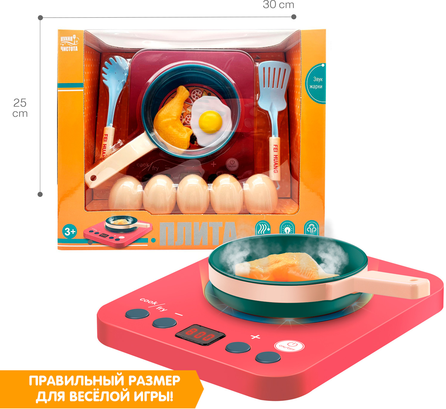 Игровой набор «Плита» станет шикарным подарком для девочек и мальчиков! Дополнительно понадобятся батарейки АА — 3 шт.