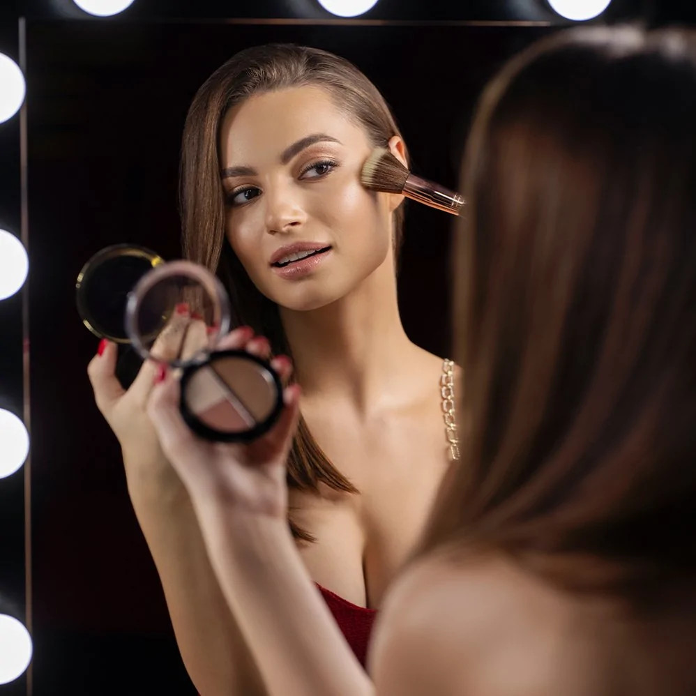 хороший контуринг, легко растушевывается. румяна и хайлайтер хорошо пигментированные, маленький расход
