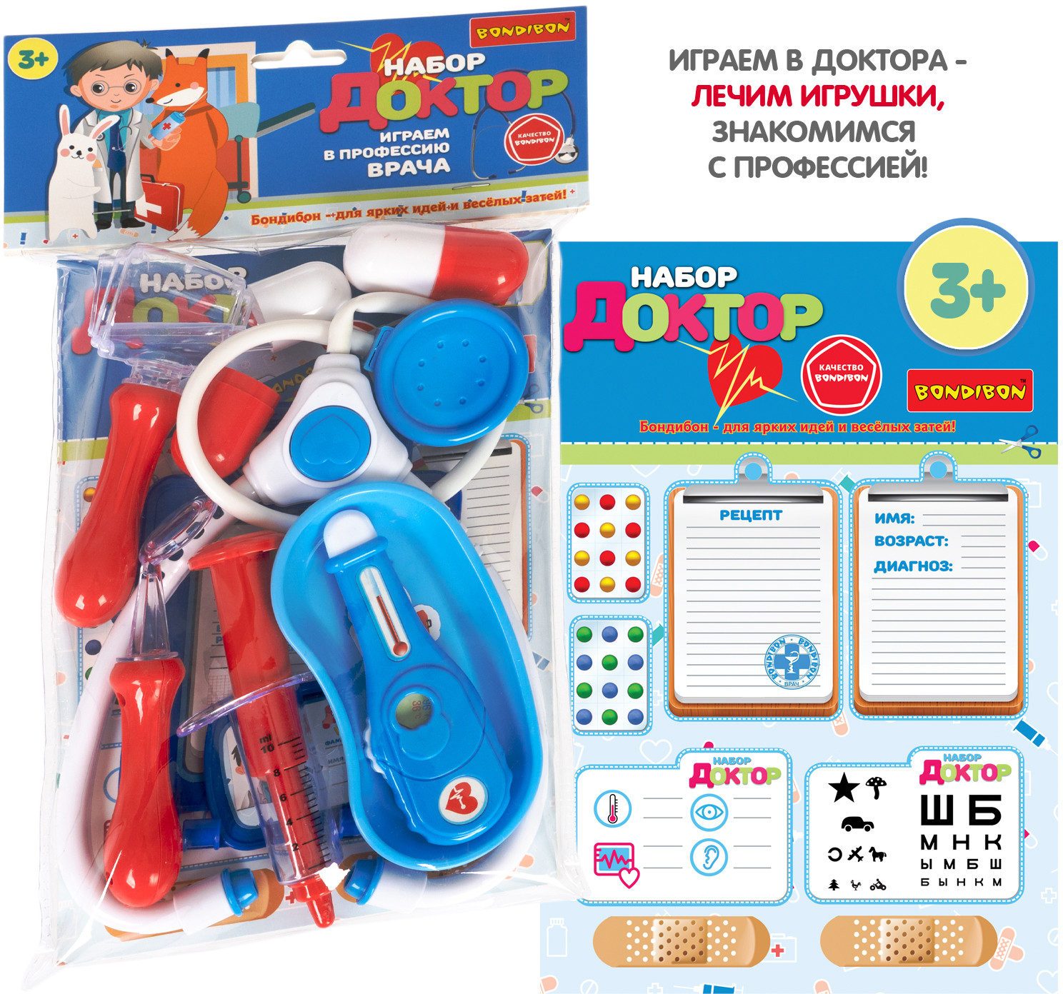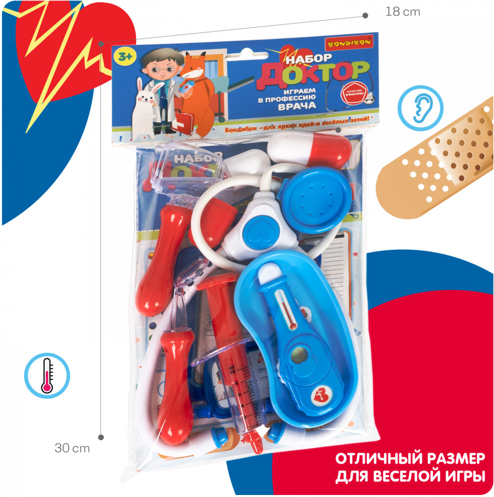 Bondibon Набор игровой «Доктор»В данный момент этот товар отсутствует в продаже. Возможно, у нас найдется аналогичный или похожий товар здесь. Даже игрушки иногда болеют. Предложите ребенку побывать на месте врача и полечить свои игрушки. Замечательный игровой набор «Доктор» от «Bondibon» поможет ребенку почувствовать себя настоящим доктором и понять важность профессии. А еще получится максимально снизить тревожность малыша и показать ему, что врач — это человек, который помогает людям, лечит их и желает исключительно добра. Со временем малыш перестанет бояться визитов в больницу. Сюжетно-ролевая игра «Доктор» нравится мальчикам и девочкам. Ведь с игровым набором можно легко вылечить заболевшие игрушки, измерить им температуру или сделать укол. |