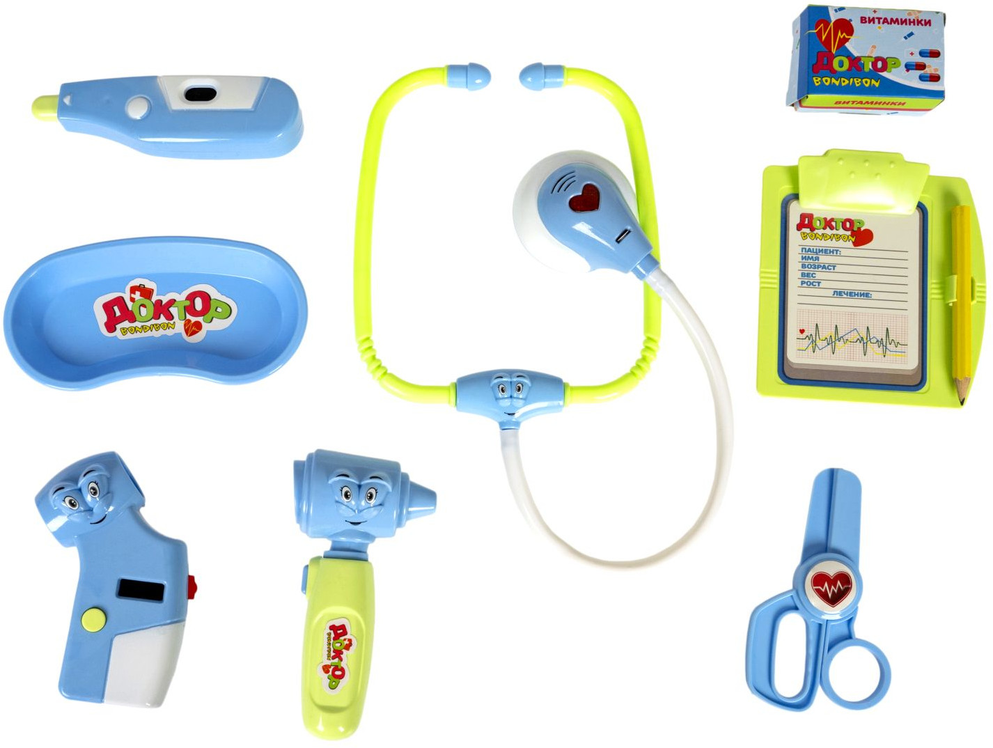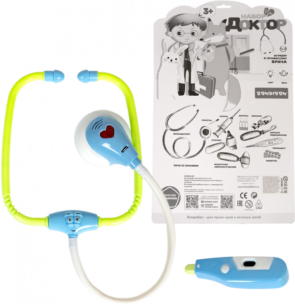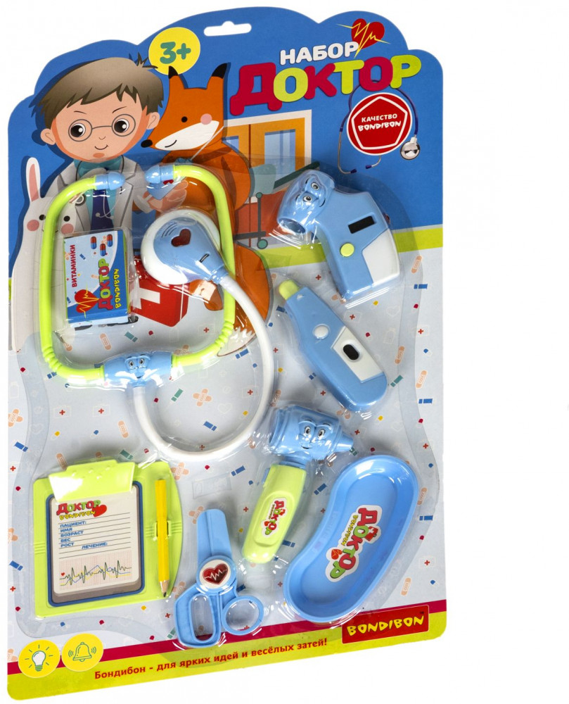 Bondibon Набор игровой «Доктор»В данный момент этот товар отсутствует в продаже. Возможно, у нас найдется аналогичный или похожий товар здесь. Даже игрушки иногда болеют. Предложите ребенку побывать на месте врача и полечить свои игрушки. Замечательный игровой набор «Доктор» от «Bondibon» поможет ребенку почувствовать себя настоящим доктором и понять важность профессии. А еще получится максимально снизить тревожность малыша и показать ему, что врач — это человек, который помогает людям, лечит их и желает исключительно добра. Со временем малыш перестанет бояться визитов в больницу. Сюжетно-ролевая игра «Доктор» нравится мальчикам и девочкам. Ведь с игровым набором можно легко вылечить заболевшие игрушки, измерить им температуру или сделать укол. А световые и звуковые эффекты создадут подходящую игровую атмосферу. |