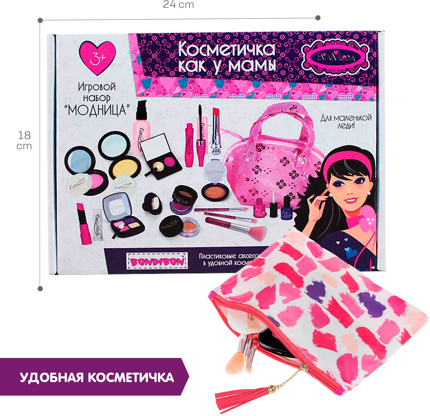 Bondibon Набор игровой «Модница. Косметичка как у мамы»В данный момент этот товар отсутствует в продаже. Возможно, у нас найдется аналогичный или похожий товар здесь. Серия: Eva Moda Комплект пластиковых аксессуаров «Модница. Косметичка как у мамы» серии «Eva Moda» от ТМ «Bondibon» это 10 реалистичных аксессуаров в яркой и стильной сумочке-кошельке. Набор позволяет имитировать процесс создания макияжа и предназначен для сюжетно-ролевой игры. В составе набора муляжи всего, что необходимо маленькой моднице: помада, тональный крем, тушь, тени, румяна, и кисточки для макияжа — совсем как настоящие, а также сумочка-кошелек на молнии, чтобы взять все необходимое с собой к подружке. |