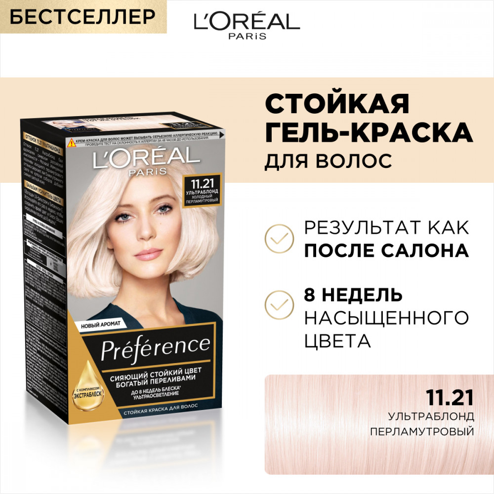 L'Oreal Paris Краска для волос «Preference», оттенок 11.21 Ультраблонд холодный перламутровый