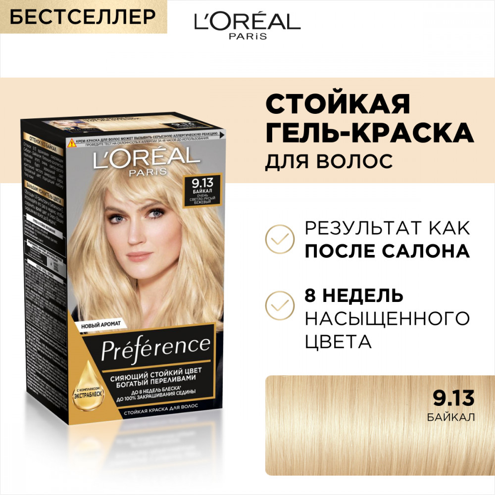 L'Oreal Paris Краска для волос «Preference», оттенок 9.13 Байкал очень светло-русый бежевый