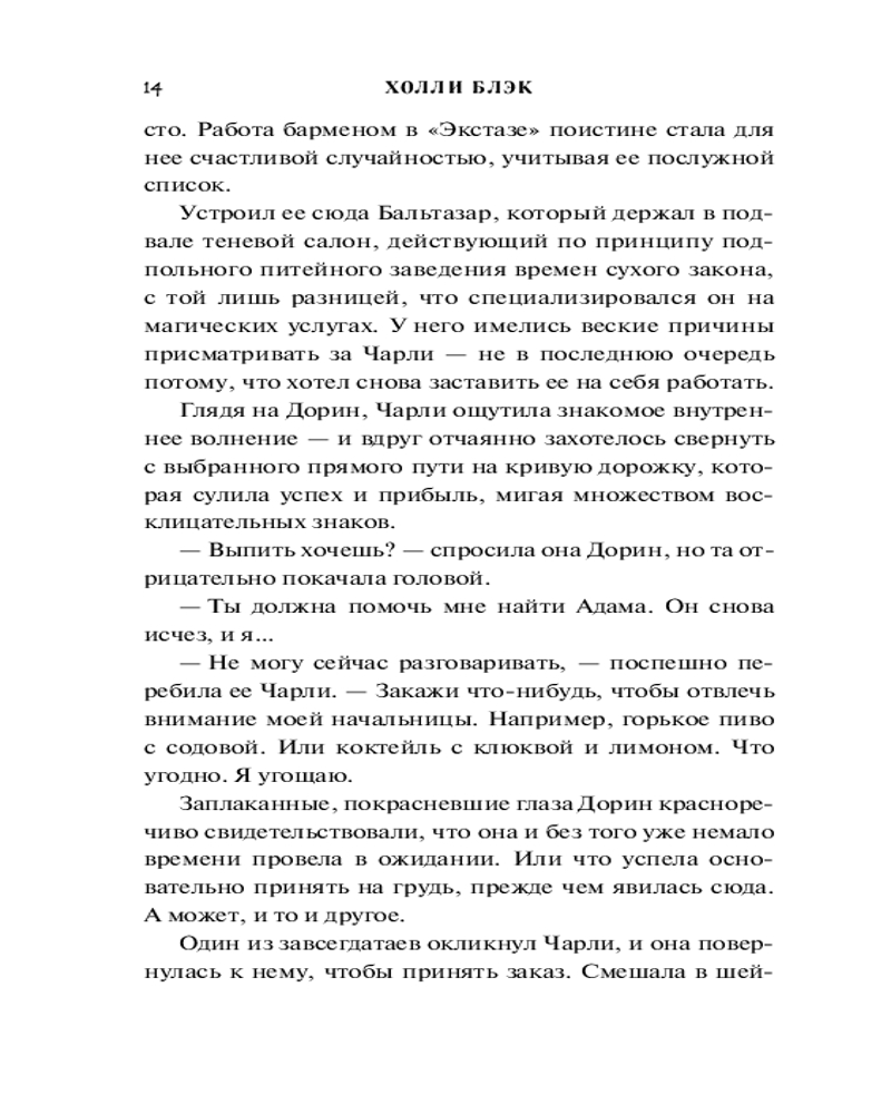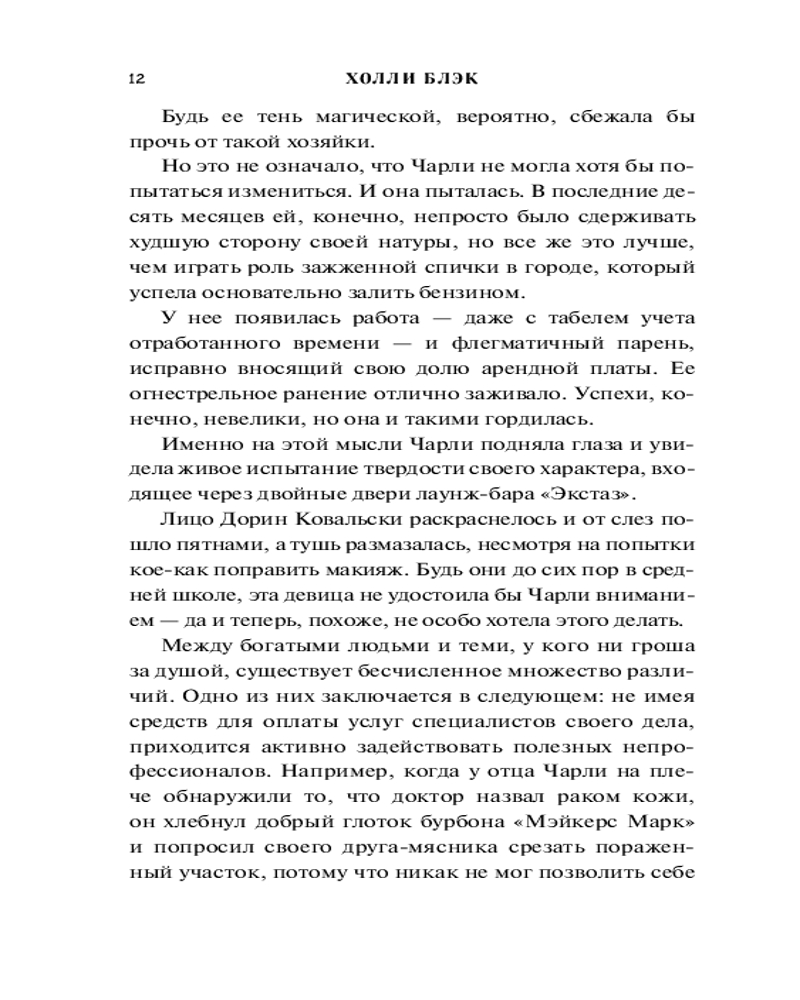 | Холли Блэк (Holly Black, урожденная Ридженбах) – американская писательница. Родилась в Нью-Джерси. Еще в школьные годы начала писать стихи, рассказы и пьесы. Окончив школу, вместе со своим другом и будущим мужем Тео Блэком отправилась в Нью-Джерси, где поступила в колледж. Окончив колледж Нью-Джерси со степенью бакалавра английской словесности, Холли решила получить вторую профессию и начала учиться библиотечному делу в школе при государственном университете Раджерс, подрабатывая... |