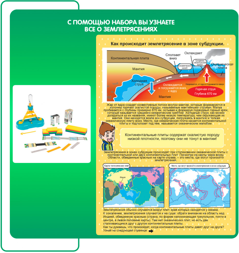Изучи строение земли, узнай много интересных фактов о нашей планете. Что такое тектонические плиты, что происходит во время землетрясения, что изучает геология? На эти и другие вопросы поможет ответить набор «Генератор землетрясений» из серии Японские опыты.