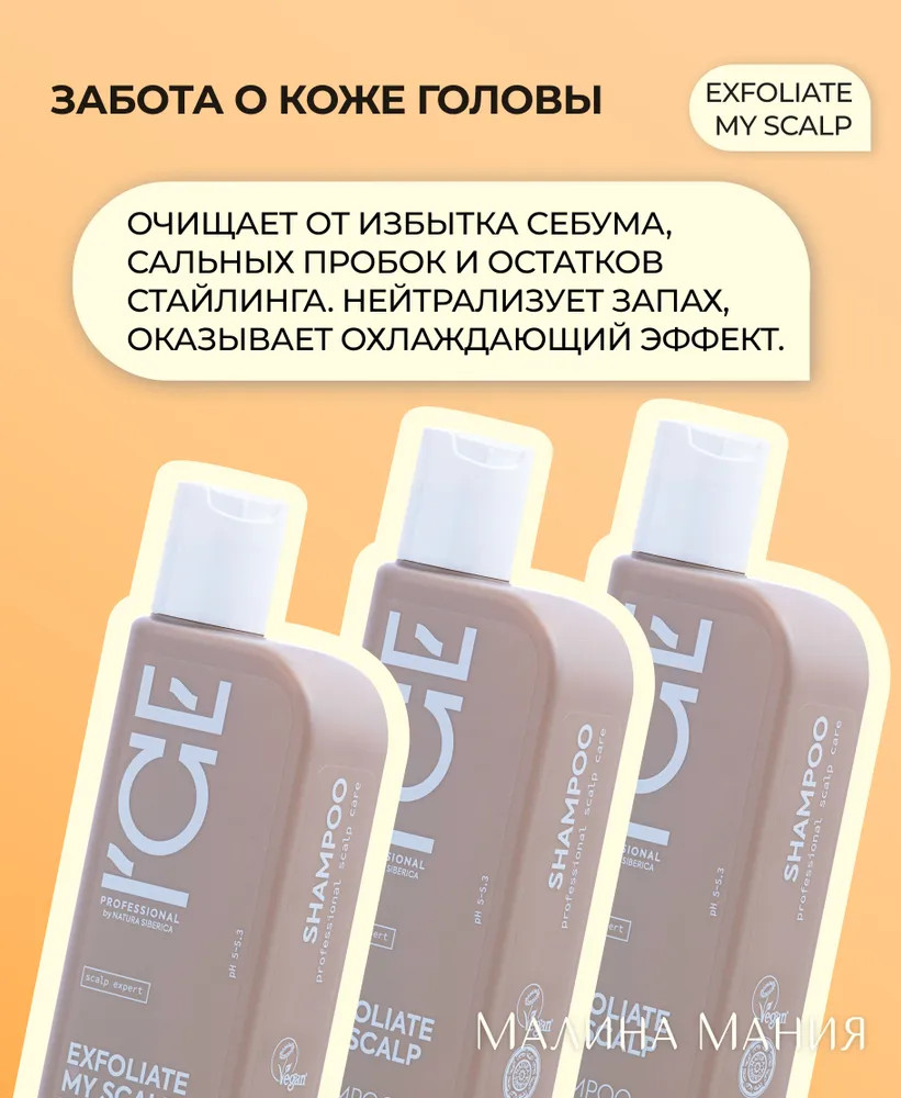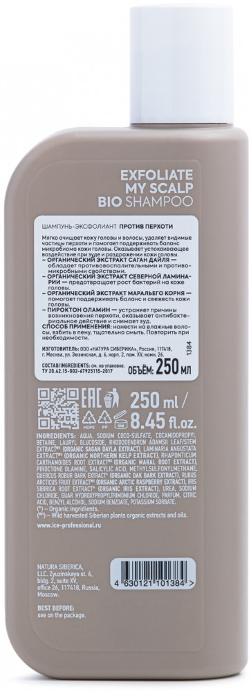 Natura Siberica Шампунь-эксфолиант против перхоти-25% +34 экономичный расход хорошая пена успокаивает запах