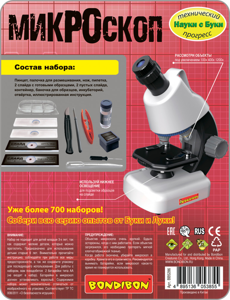 💳 Оплатить за товар можно при получении 🇰🇿 Есть бесплатная доставка по Казахстану от 1 дня 🎁 Копите бонусы с каждой покупки Серия: Науки с Буки. Французские опыты Что скрывается от наших глаз? Узнайте это вместе с Микроскопом Bondibon с увеличением 100х, 400х, 1200х и отличным качеством изображения! С таким точным инструментом из серии «Французские Опыты» Науки с Буки ребенок будет с удовольствием изучать природные явления. Занятия с микроскопом подарят ребенку много впечатлений от увиденного и помогут в школьных занятиях. |