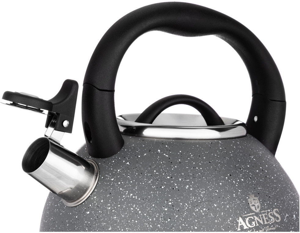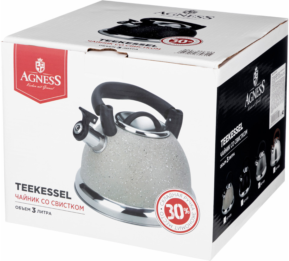 Agness Чайник со свистком и складной ручкой «Монблан»-40% +309 удобная ручка быстро нагревается достаточный объем стиль