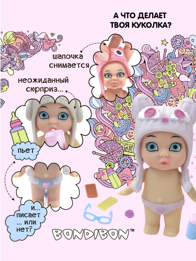 Bondibon Кукла-сюрприз в шареВ данный момент этот товар отсутствует в продаже. Возможно, у нас найдется аналогичный или похожий товар здесь. Серия: Куклы OLY Кукла всегда была самым приятным подарком для девочки! Поэтому «Bondibon» представляет хит сезона — линейку кукол OLY! OLY — это разнообразные очаровательные куколки, у каждой из которых есть свой набор оригинальных аксессуаров, а также особенные функции, наличие и разнообразие которых варьируется от одной куколки к другой. Например, одна куколка пьет, другая пьет и писает, а третья реагирует на влагу! У куколки двигаются ручки, снимается шапочка в виде забавного животного. На неё можно примерить все аксессуары из любого набора OLY. Необычный сундучок-шар станет дополнительным аксессуаром для игры. Он может быть как подставкой для куколки, так и местом хранения аксессуаров. А еще его очень интересно распаковывать! В нем можно найти и наклейки, и сосочку, и очки или сумочку, а также любые другие аксессуары, а какие именно — это сюрприз! В коллекции «Кукла в шаре» — 6 разных пупсиков. Соберите всю серию кукол OLY! |