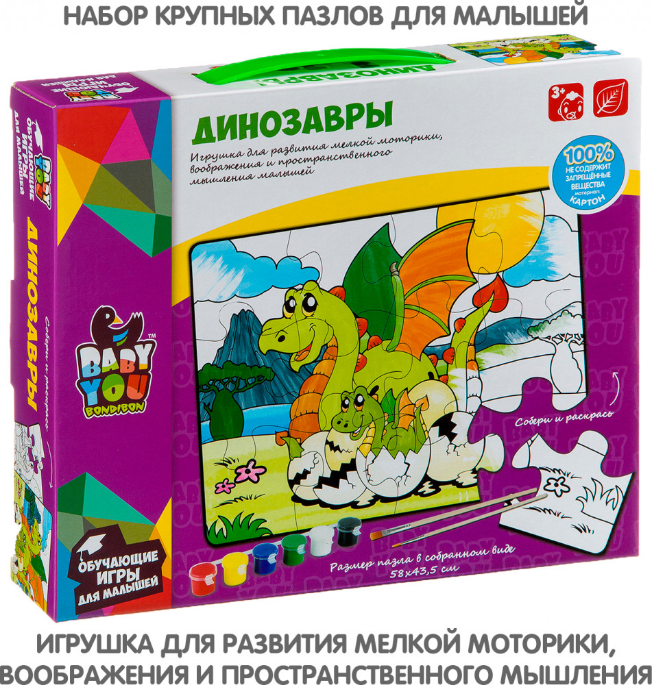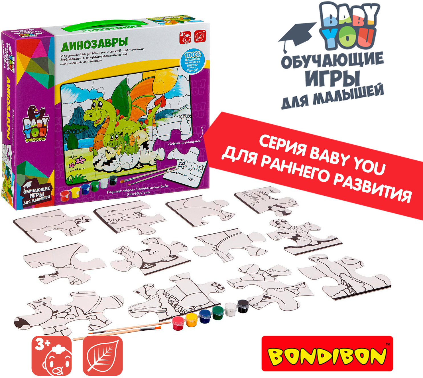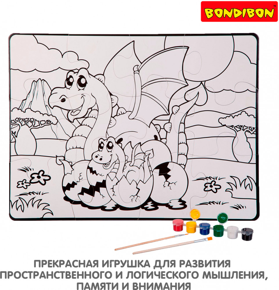 Bondibon Пазл для раскрашивания «Динозавры»В данный момент этот товар отсутствует в продаже. Возможно, у нас найдется аналогичный или похожий товар здесь. Серия: Baby You Пазл подойдет малышам от 3-х лет. В наборе 12 крупных деталей пазла, 6 красок и 2 кисточки. После сборки пазл можно раскрасить красками. Размер пазла в собранном виде 58×43,5 см. Играя с пазлом малыш разовьет воображение фантазию мелкую моторику и тактильное восприятие. |