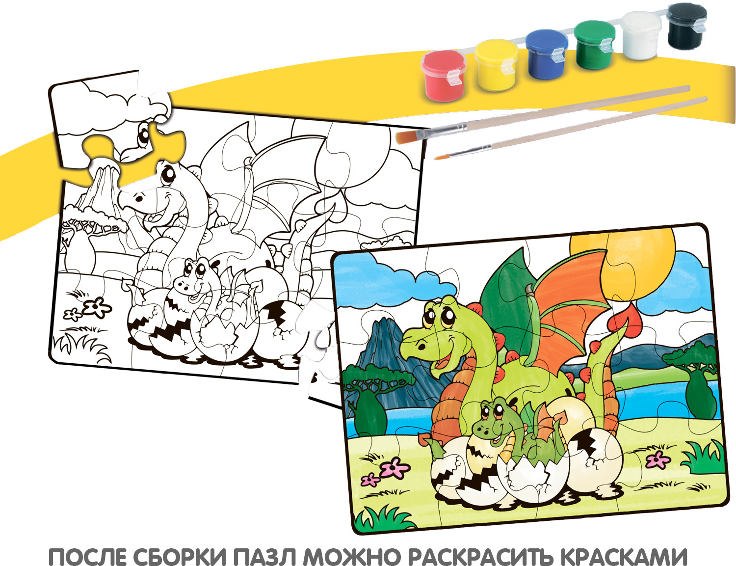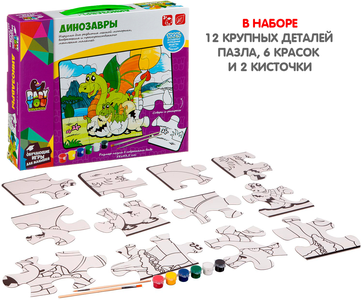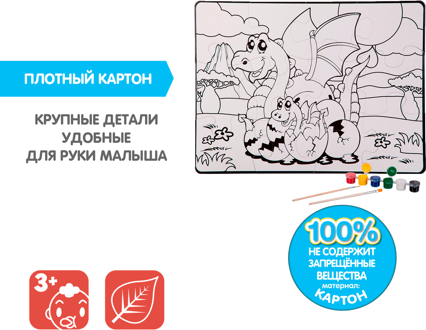 Bondibon Пазл для раскрашивания «Динозавры»В данный момент этот товар отсутствует в продаже. Возможно, у нас найдется аналогичный или похожий товар здесь. Серия: Baby You Пазл подойдет малышам от 3-х лет. В наборе 12 крупных деталей пазла, 6 красок и 2 кисточки. После сборки пазл можно раскрасить красками. Размер пазла в собранном виде 58×43,5 см. Играя с пазлом малыш разовьет воображение фантазию мелкую моторику и тактильное восприятие. |