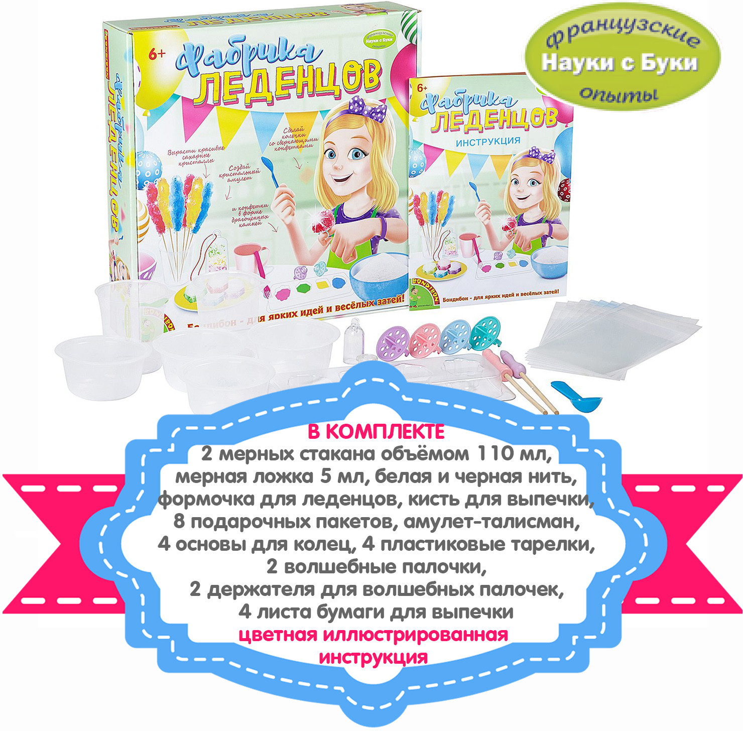 Серия: Науки с Буки. Французские опыты Всем детям хочется иметь неограниченный доступ к сладостям! Конечно же, не стоит потакать детям во всем, но можно показать, как эти сладости сделать самому! С набором «Фабрика леденцов» это очень легко! Используя науку кристаллизации, плавления и растворения для создания мерцающих твердых сахарных угощений, ребенок получит не только удовольствие от создания сладостей, но и приобретет новые знания по химии и физике или закрепит имеющиеся. |