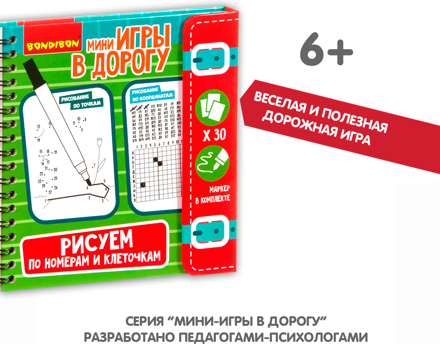 Bondibon Мини-игры в дорогу «Рисуем по номерам и клеточкам»-30% +57