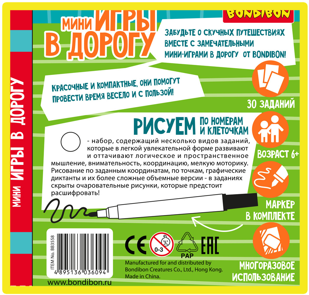 💳 Оплатить за товар можно при получении 🇰🇿 Есть бесплатная доставка по Казахстану от 1 дня 🎁 Копите бонусы с каждой покупки Забудьте о скучных путешествиях вместе с замечательными мини-играми в дорогу от BONDIBON! Красочные и компактные, они будут идеальными спутниками для маленького непоседы. |