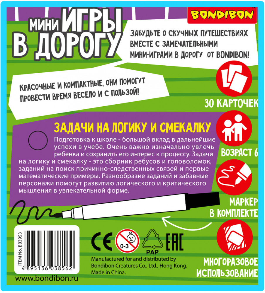 Bondibon Мини-игры в дорогу «Задачи на логику и смекалку»-30% +90