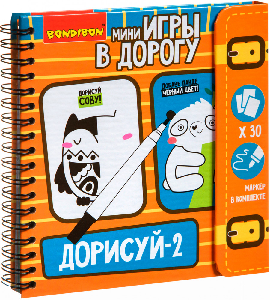 Bondibon Мини-игры в дорогу «Дорисуй-2»В данный момент этот товар отсутствует в продаже. Возможно, у нас найдется аналогичный или похожий товар здесь. Компактные развивающие игры в дорогу — новый набор карточек с яркими добрыми картинками, на которых чего-то не хватает. В комплекте есть маркер на водной основе, которым можно рисовать на карточках, а потом с легкостью стирать. Задача малыша — дорисовать по образцу различных животных или их недостающие части. Яркие, интересные, веселые карточки не дадут малышу заскучать ни дома, ни в дороге, при этом развивая его в игровой форме! |
