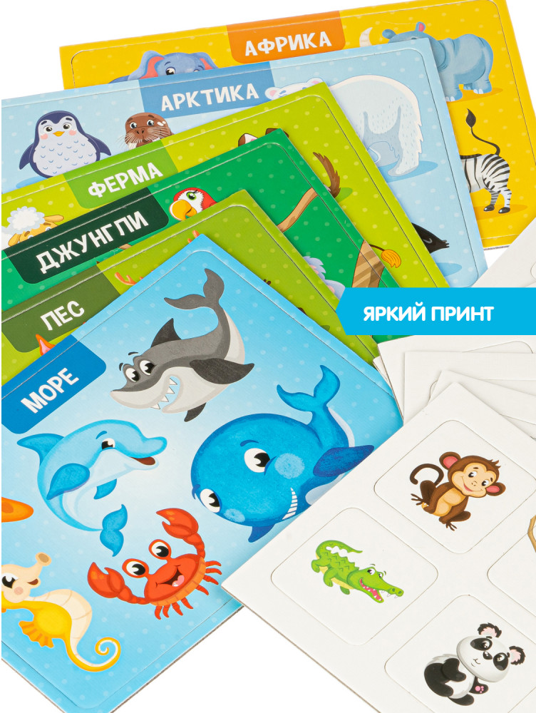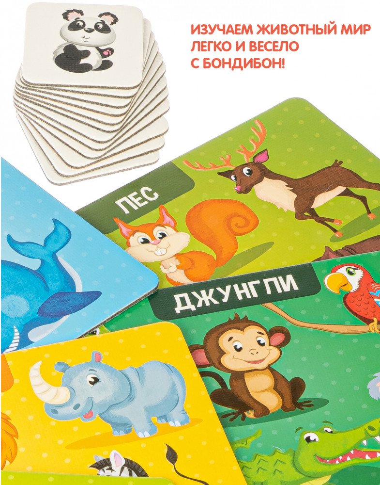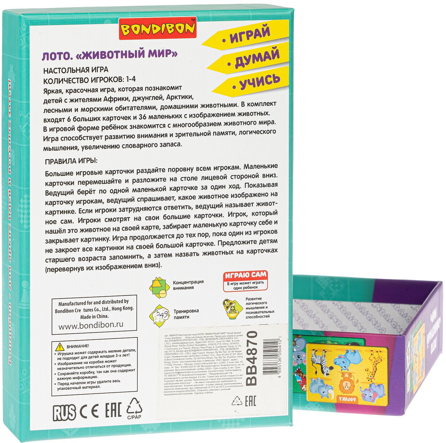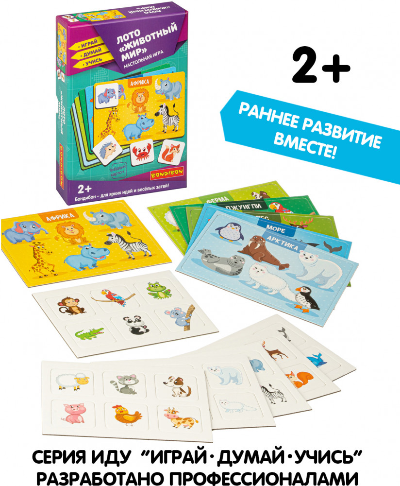 Серия: Играй. Думай. Учись Лото «Животный мир» серии «Играй Думай Учись» от «Bondibon» — яркая, красочная игра, которая познакомит детей с жителями Африки, джунглей, Арктики, лесными и морскими обитателями, домашними животными. В игровой форме ребёнок знакомится с многообразием животного мира. Игра способствует развитию внимания и зрительной памяти, логического мышления, увеличению словарного запаса. |