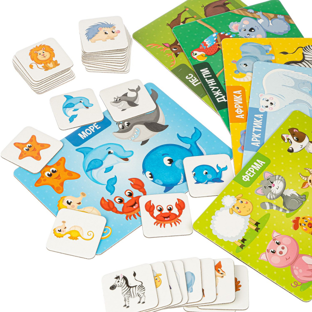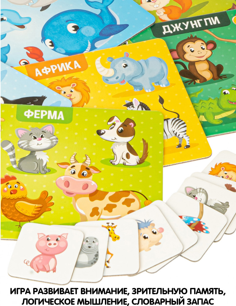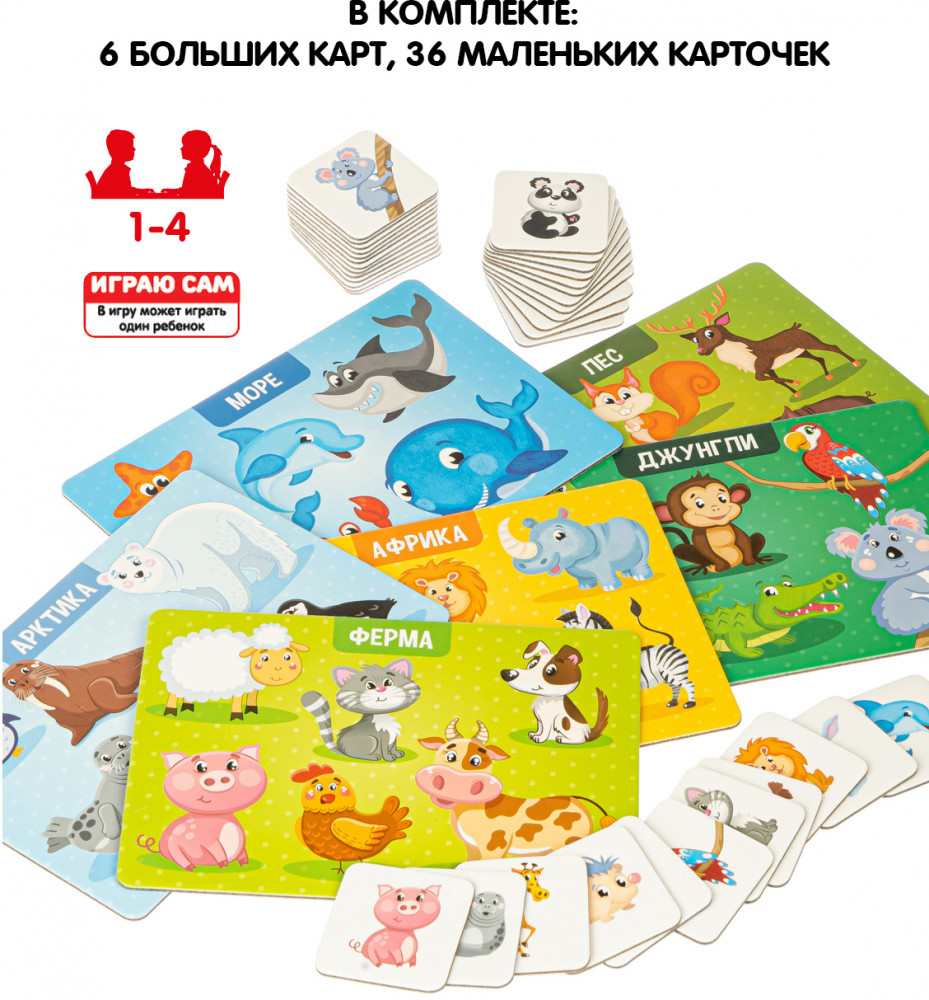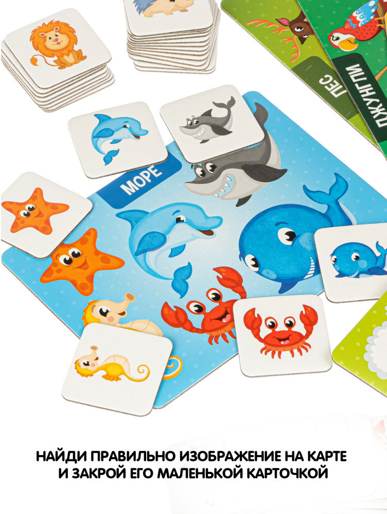 Серия: Играй. Думай. Учись Лото «Животный мир» серии «Играй Думай Учись» от «Bondibon» — яркая, красочная игра, которая познакомит детей с жителями Африки, джунглей, Арктики, лесными и морскими обитателями, домашними животными. В игровой форме ребёнок знакомится с многообразием животного мира. Игра способствует развитию внимания и зрительной памяти, логического мышления, увеличению словарного запаса. |