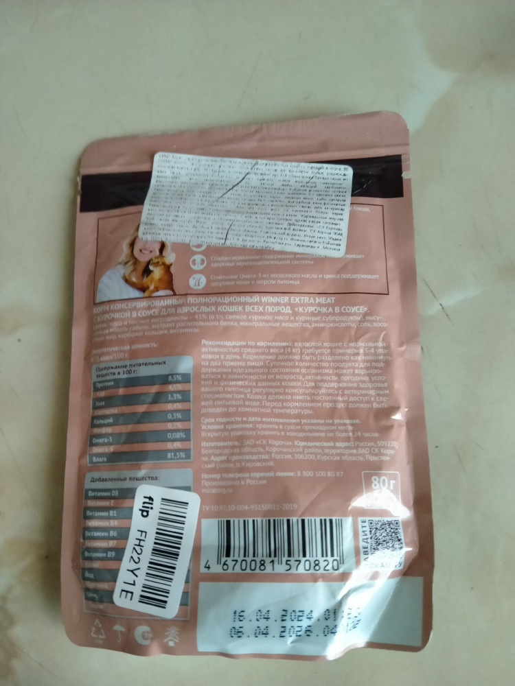 корм выпущенный в апреле 2024года не съедобный.без запаха,изменён цвет.
