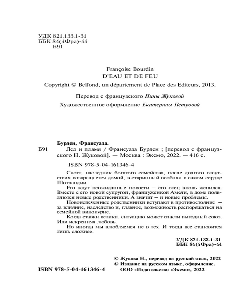 💳 Оплатить за товар можно при получении 🇰🇿 Есть бесплатная доставка по Казахстану от 1 дня 🎁 Копите бонусы с каждой покупки Серия: Novel. Чистая эмоция. Романы Франсуазы Бурден Скотт, наследник богатого семейства, после долгого отсутствия возвращается домой, в старинный особняк в самом сердце Шотландии. |