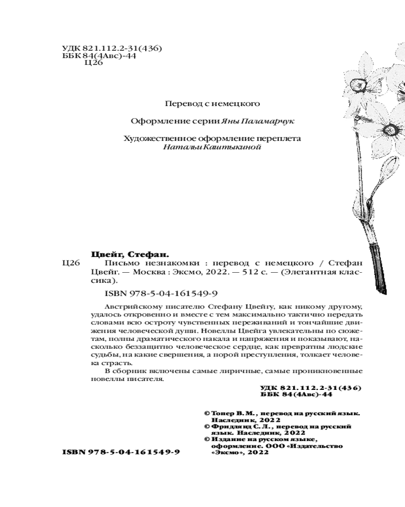 Письмо незнакомки-20% +137 красивая обложка красивое издание иллюстрации