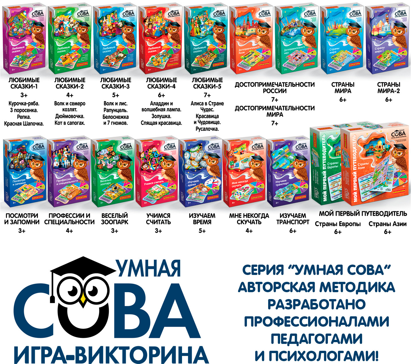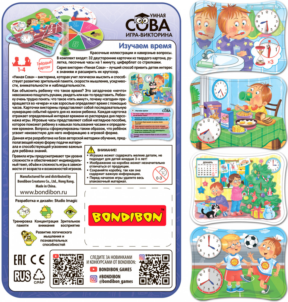 Серия: Умная сова Познакомить ребенка со временем очень просто с игрой-викториной «Изучаем время» Умная сова Bondibon. Умная Сова — это серия, которая расширяет кругозор, прививает интерес к познанию и развивает память, логику, усидчивость и наблюдательность. Новая информация усваивается ребенком пока он читает карточку. Это авторская разработка, предполагающая новую форму подачи материала и его усвоения. |