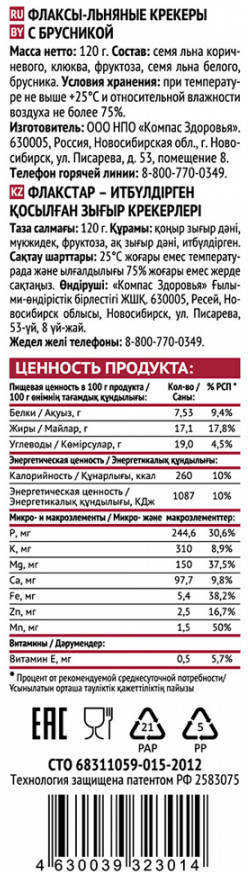 Компас Здоровья Флаксы льняные с брусникой