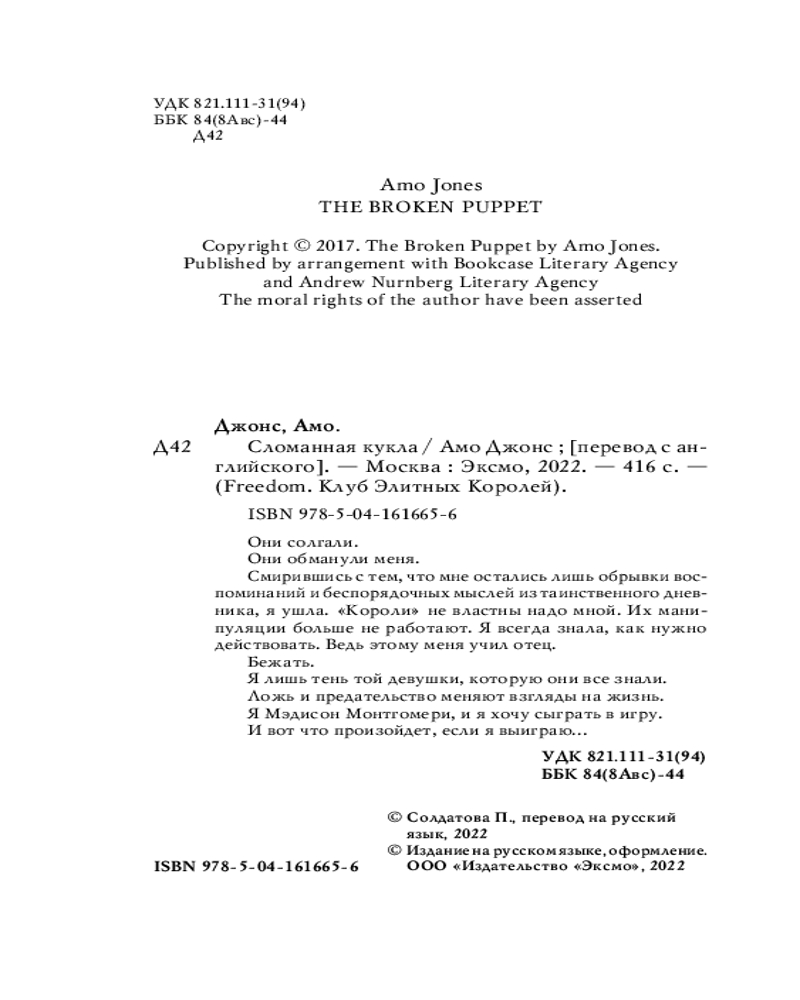 затягивает чтение книга суперская рекомендую В данный момент этот товар отсутствует в продаже. Возможно, у нас найдется аналогичный или похожий товар здесь. Серия: Freedom. Клуб Элитных Королей Завораживающее продолжение серии «Клуб Элитных Королей»!