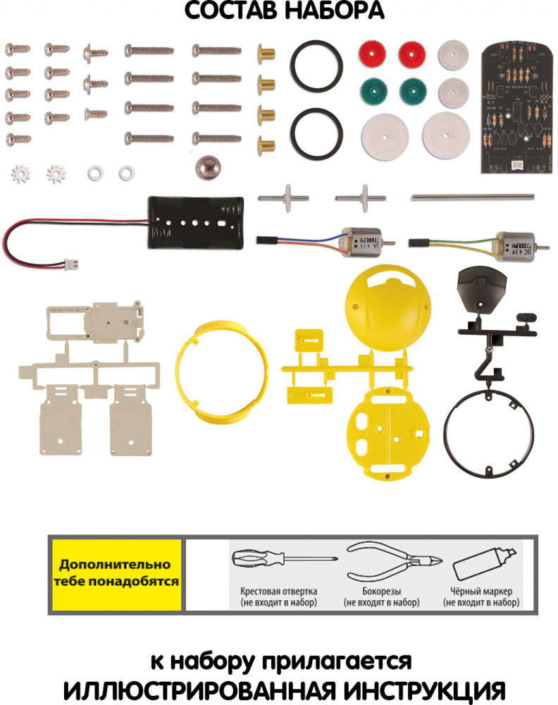 💳 Оплатить за товар можно при получении 🇰🇿 Есть бесплатная доставка по Казахстану от 1 дня 🎁 Копите бонусы с каждой покупки Серия: Науки с Буки. Французские опыты Собрать забавного и послушного робота, который будет идти по нарисованному ребенком пути — что может быть увлекательнее? Если Вашему юному гению уже исполнилось 8 лет, для него не составит труда справиться с этой задачей! Работа с этим набором поможет приобрести новые знания в области физики и робототехники, или закрепить ранее полученные в школе. |