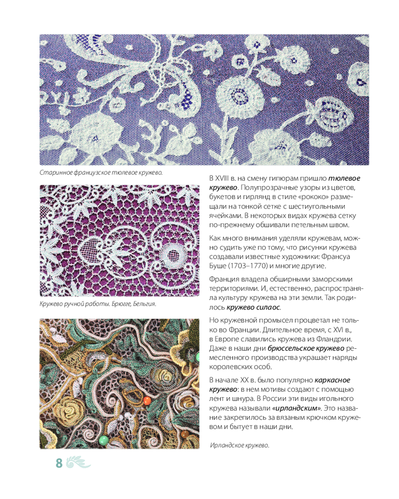 Изящное игольное кружево. Старинное искусство вышивки в историях, техниках и мастер-классахВ данный момент этот товар отсутствует в продаже. Возможно, у нас найдется аналогичный или похожий товар здесь. Серия: Популярная энциклопедия современного рукоделия Удивительный вид вышивки — игольное кружево, который, зародившись в древние времена, распространился по всему миру,в миллионе разных вариаций! В каждом уголке земного шара — своя разновидность: в Турции — ойя, в скандинавских странах — хардангер, а еще хедебо, силаос, «соль», ритичелло, венецианское кружево... Перечислять можно вечно! И у каждого вида вышивального искусства — свой шарм, своя техника, свои тонкости и секреты. |