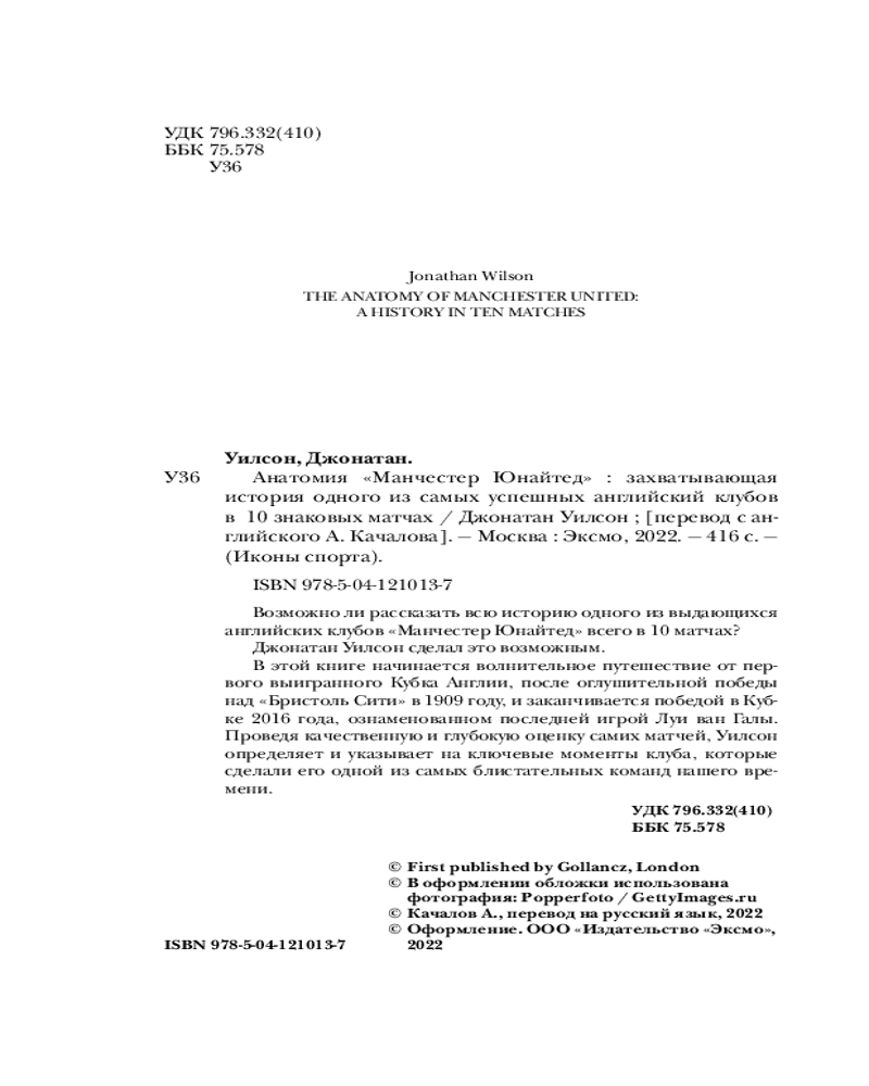 Анатомия «Манчестер Юнайтед». Захватывающая история одного из самых успешных английский клубовВ данный момент этот товар отсутствует в продаже. Возможно, у нас найдется аналогичный или похожий товар здесь. Серия: Иконы спорта Возможно ли рассказать всю историю одного из выдающихся английских клубов «Манчестер Юнайтед» всего в 10 матчах? Джонатан Уилсон сделал это возможным. |