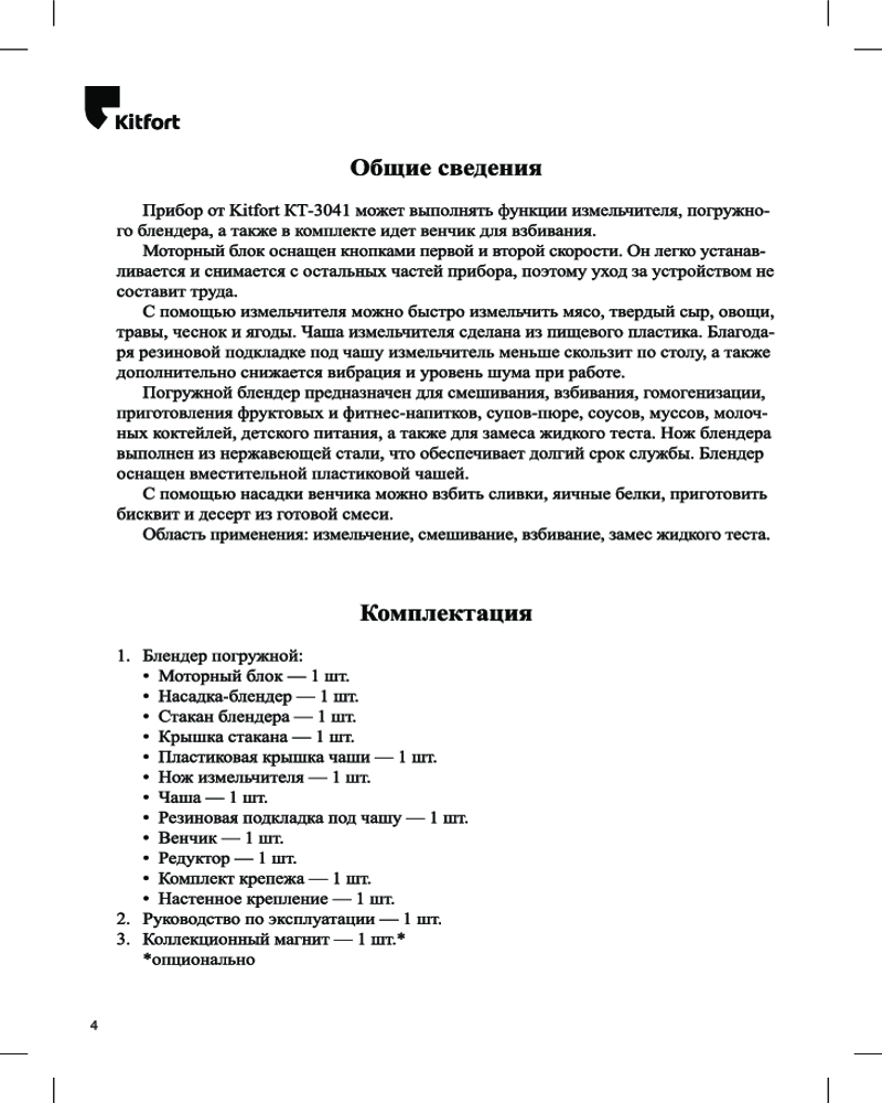 Kitfort Блендер погружной КТ-3041-4