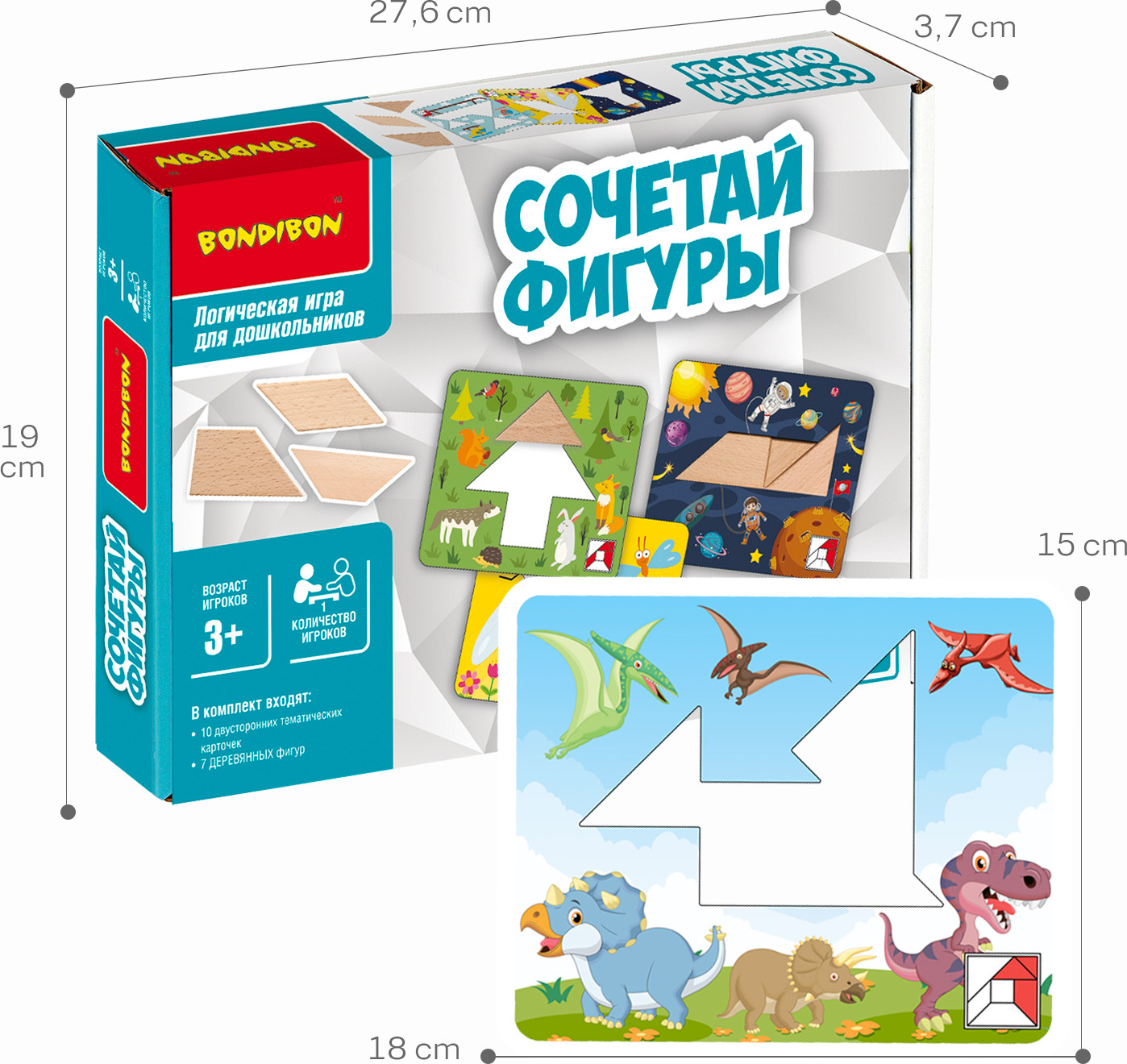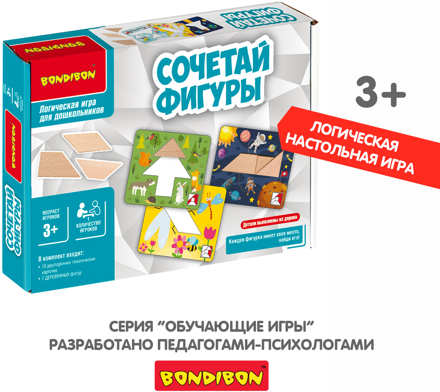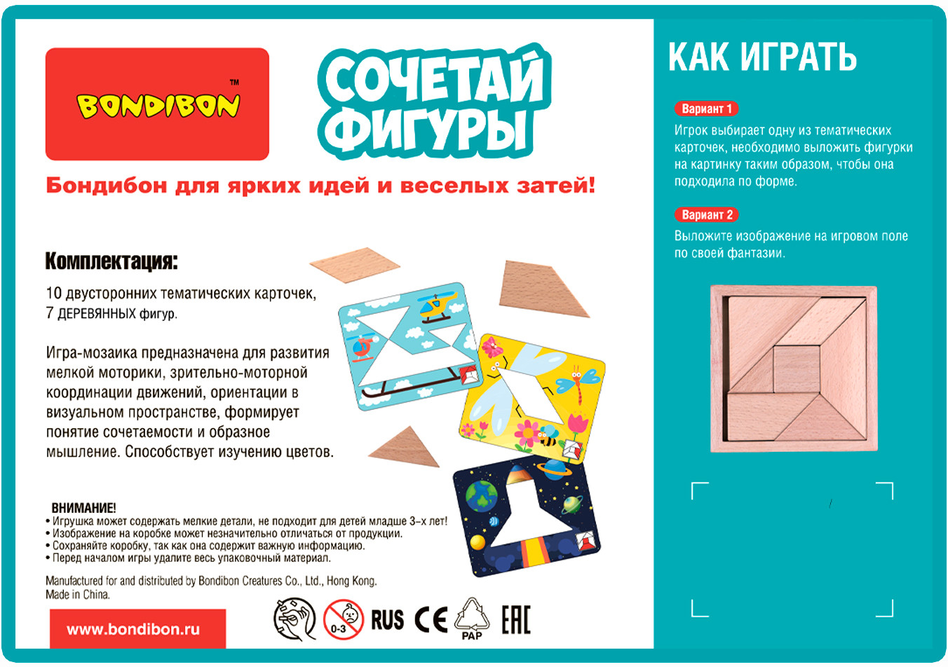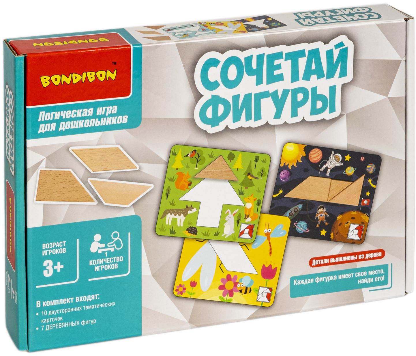 Что может быть лучше обычной мозаики? Удивительная логическая игра-танграм «Сочетай фигуры» из серии «Обучающие игры для дошкольников» от Bondibon! Танграм — это головоломка, где из нескольких фигур разной формы необходимо собрать еще одну фигуру. В игре необходимо выполнять задания, изображенные на каждой карточке, путем выкладывания фигур в нужном положении. Ребенок должен самостоятельно подбирать размер и форму фигурных блоков, чтобы правильно заполнить пространство внутри карточки.