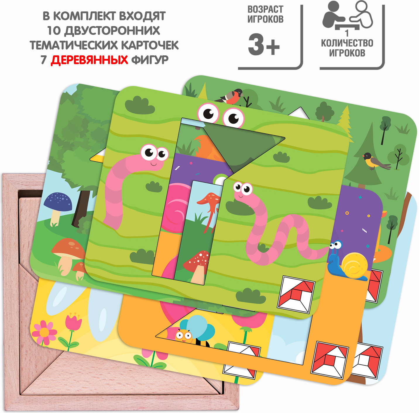 • фигурные блоки из дерева — 7 шт.