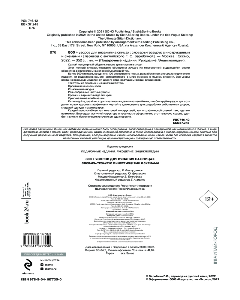 💳 Оплатить за товар можно при получении 🇰🇿 Есть бесплатная доставка по Казахстану 🎁 Копите бонусы с каждой покупки Серия: Подарочные издания. Рукоделие. Энциклопедии Самый популярный сборник узоров для вязания в мире! |