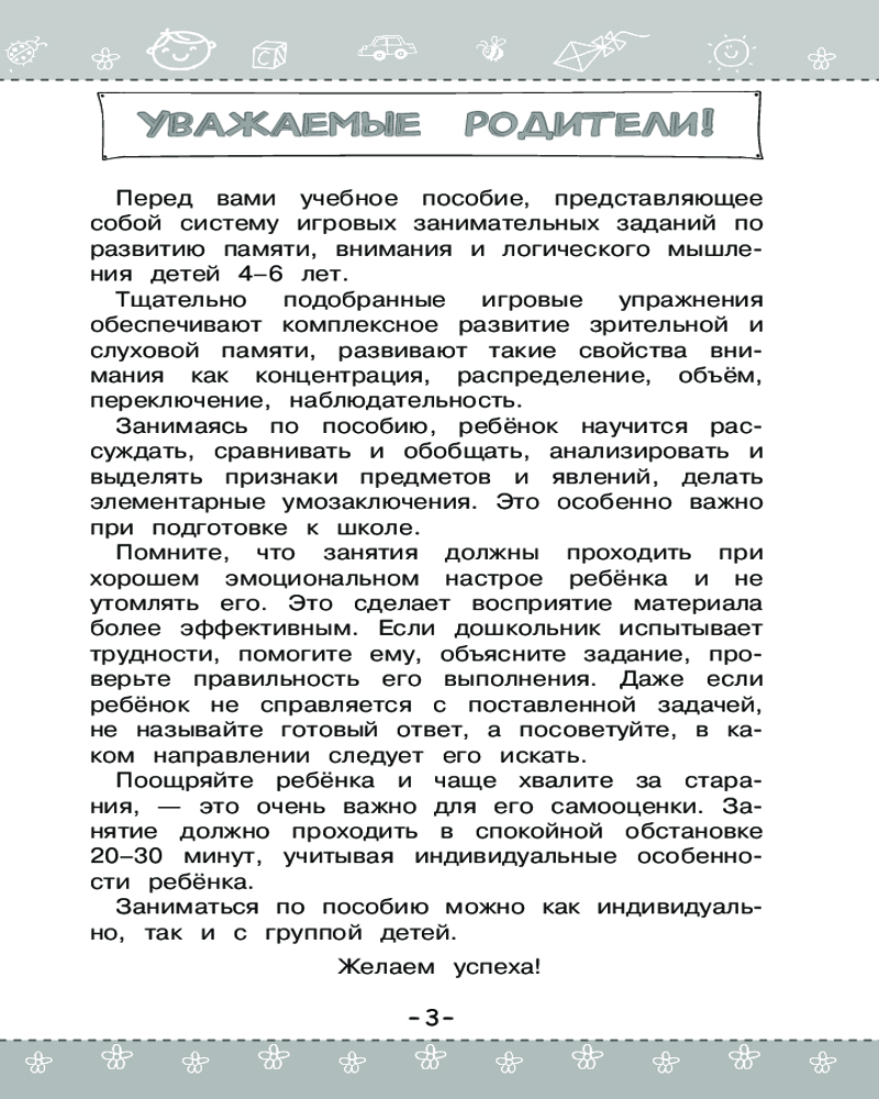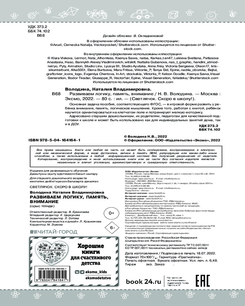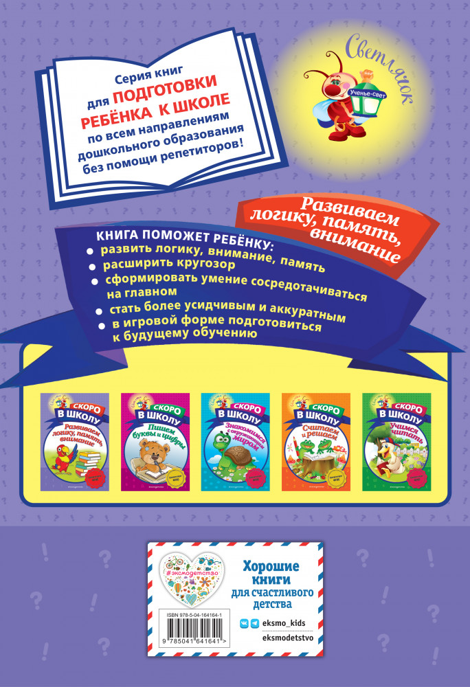 💳 Оплатить за товар можно при получении 🇰🇿 Есть бесплатная доставка по Казахстану от 1 дня 🎁 Копите бонусы с каждой покупки Серия: Светлячок. Скоро в школу! (обложка) Цель книги — в игровой форме подготовить ребёнка к школе без помощи репетиторов. Тщательно подобранные занимательные задания способствуют тренировке таких свойств внимания, как концентрация, распределение, объём, переключение, наблюдательность; обеспечивают комплексное развитие памяти и логического мышления. Выполняя увлекательные задания, ребёнок научится рассуждать, сравнивать, обобщать, анализировать, выделять признаки предметов и явлений, делать элементарные умозаключения. |