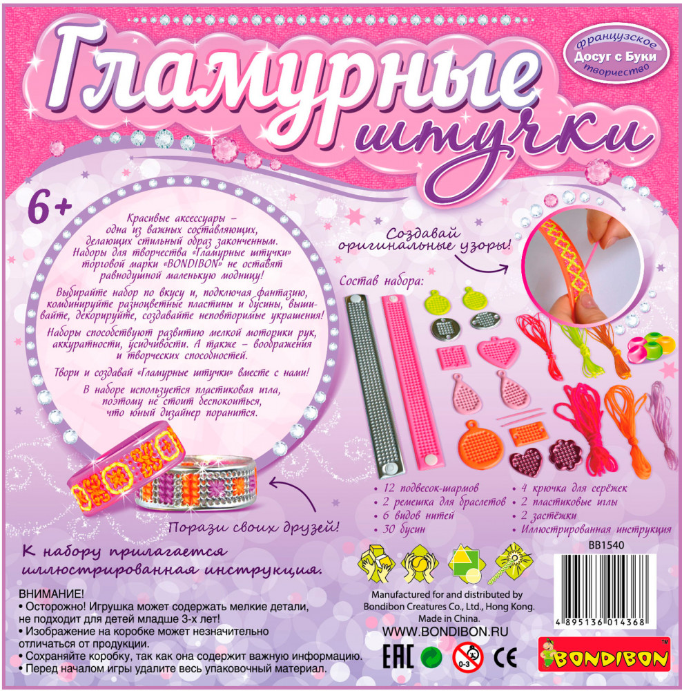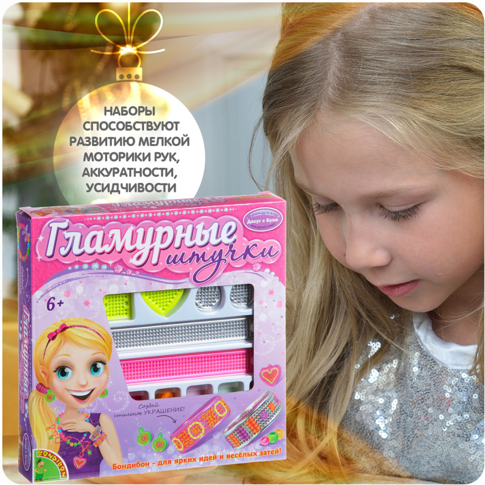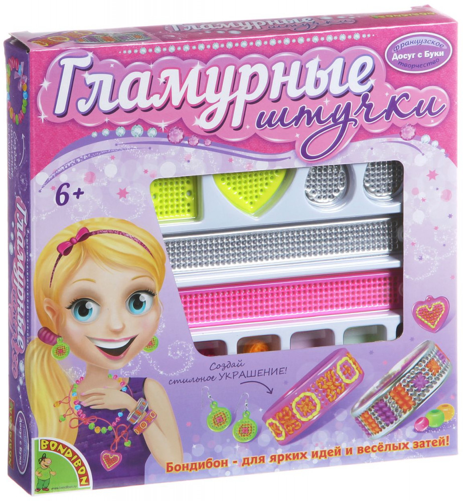 Серия: Гламурные штучки Наборы для творчества «Гламурные штучки» торговой марки «Bondibon» не оставят равнодушной маленькую модницу! Выбирайте набор по вкусу и, подключая фантазию, комбинируйте разноцветные пластины и бусины, вышивайте, декорируйте, создавайте неповторимые украшения! Наборы способствуют развитию мелкой моторики рук, аккуратности, усидчивости. |