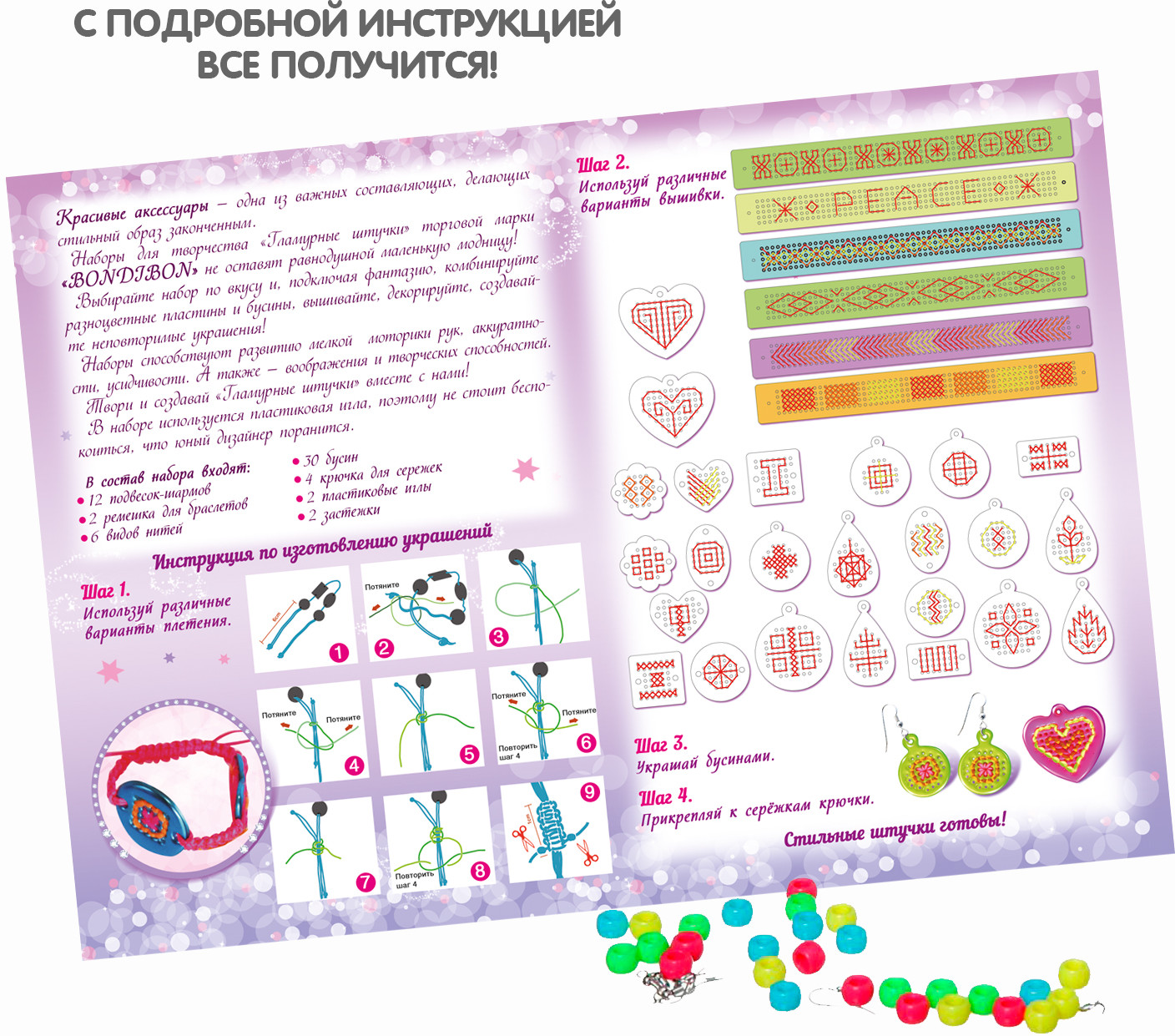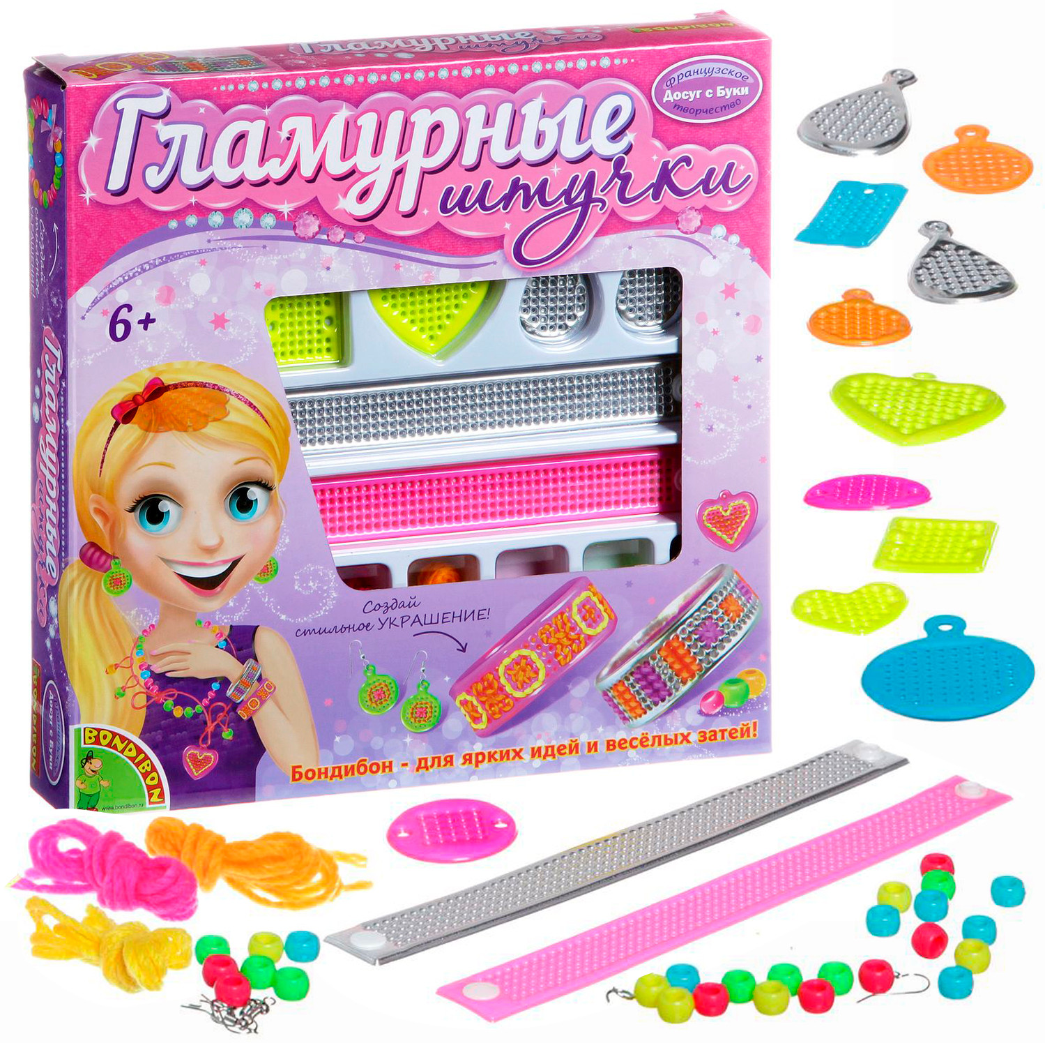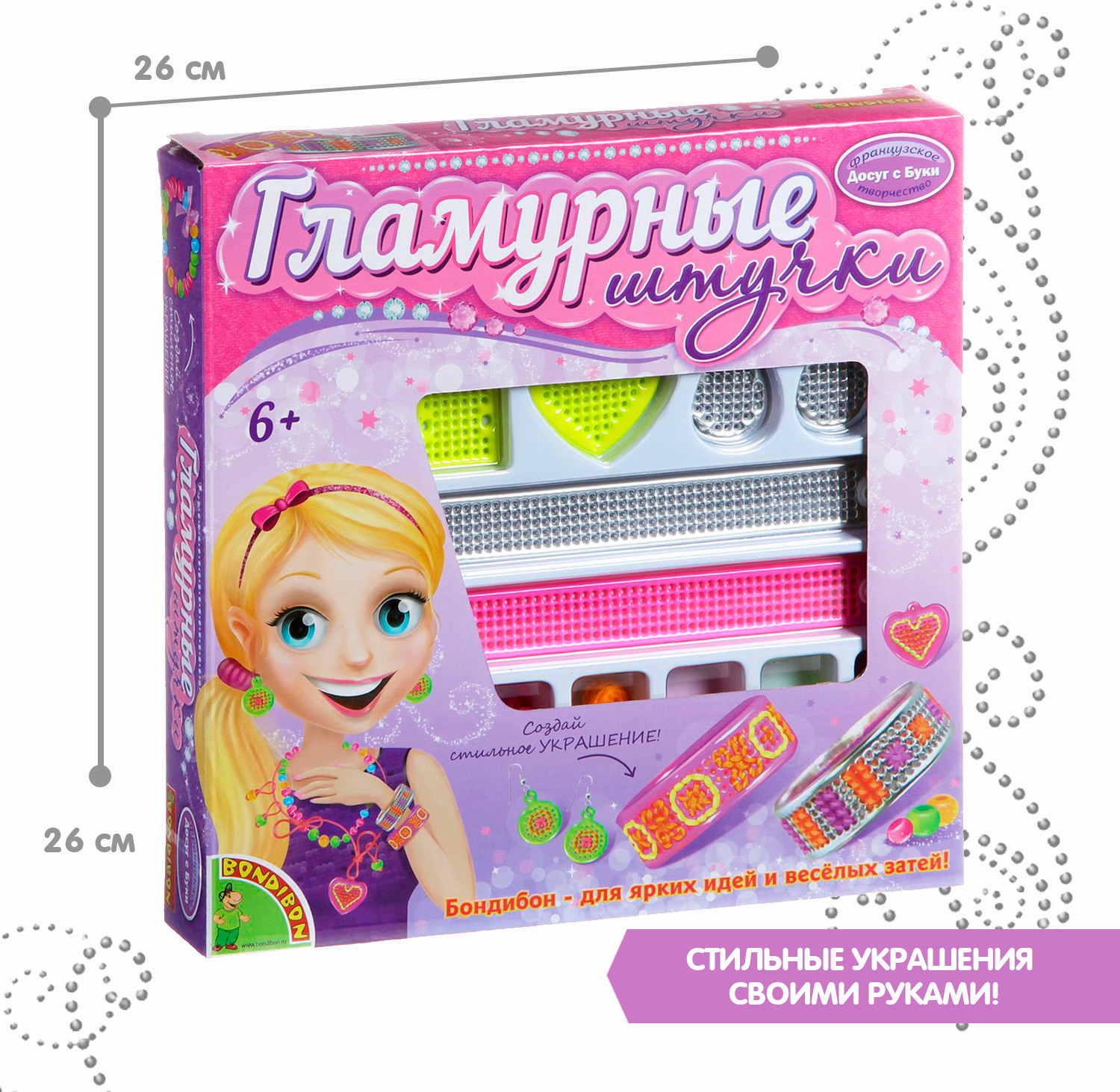 Серия: Гламурные штучки Наборы для творчества «Гламурные штучки» торговой марки «Bondibon» не оставят равнодушной маленькую модницу! Выбирайте набор по вкусу и, подключая фантазию, комбинируйте разноцветные пластины и бусины, вышивайте, декорируйте, создавайте неповторимые украшения! Наборы способствуют развитию мелкой моторики рук, аккуратности, усидчивости. |