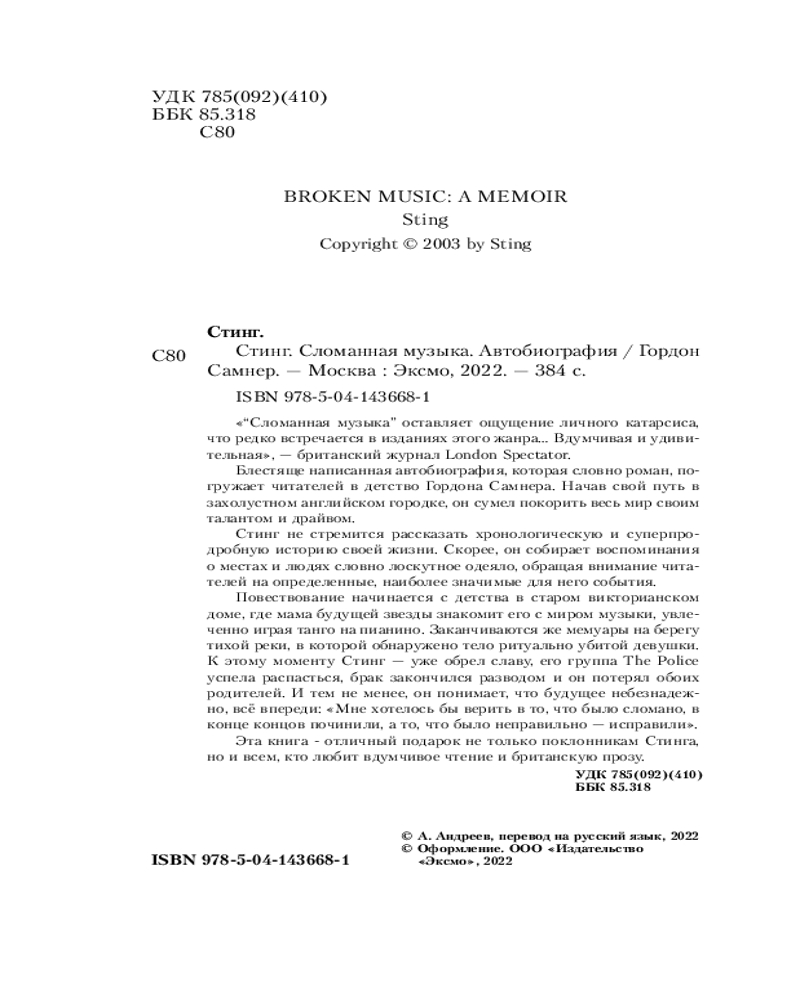 | Стинг. Сломанная музыка. Автобиография Стинг