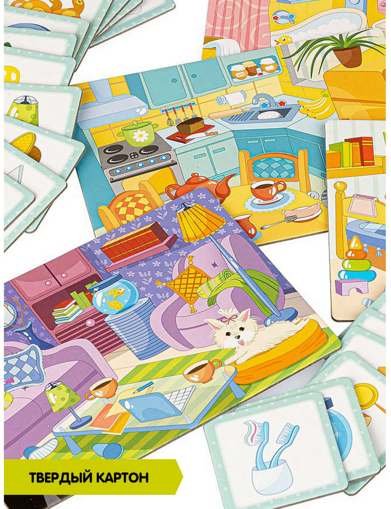 Серия: Играй. Думай. Учись Настольная игра Лото «Дом» — это красочная игра для малышей серии «Играй Думай Учись» Bondibon на узнавание предметов. |