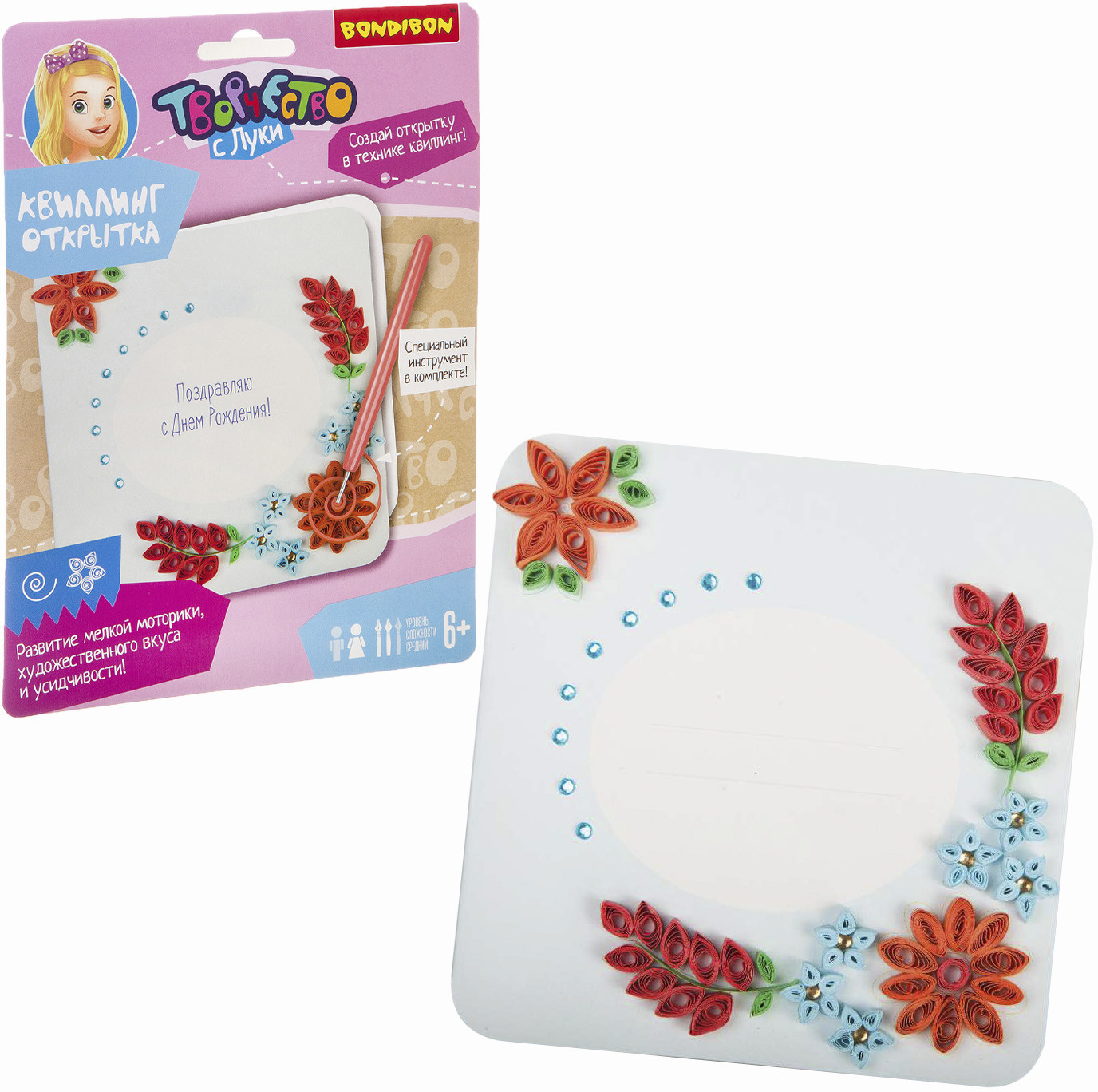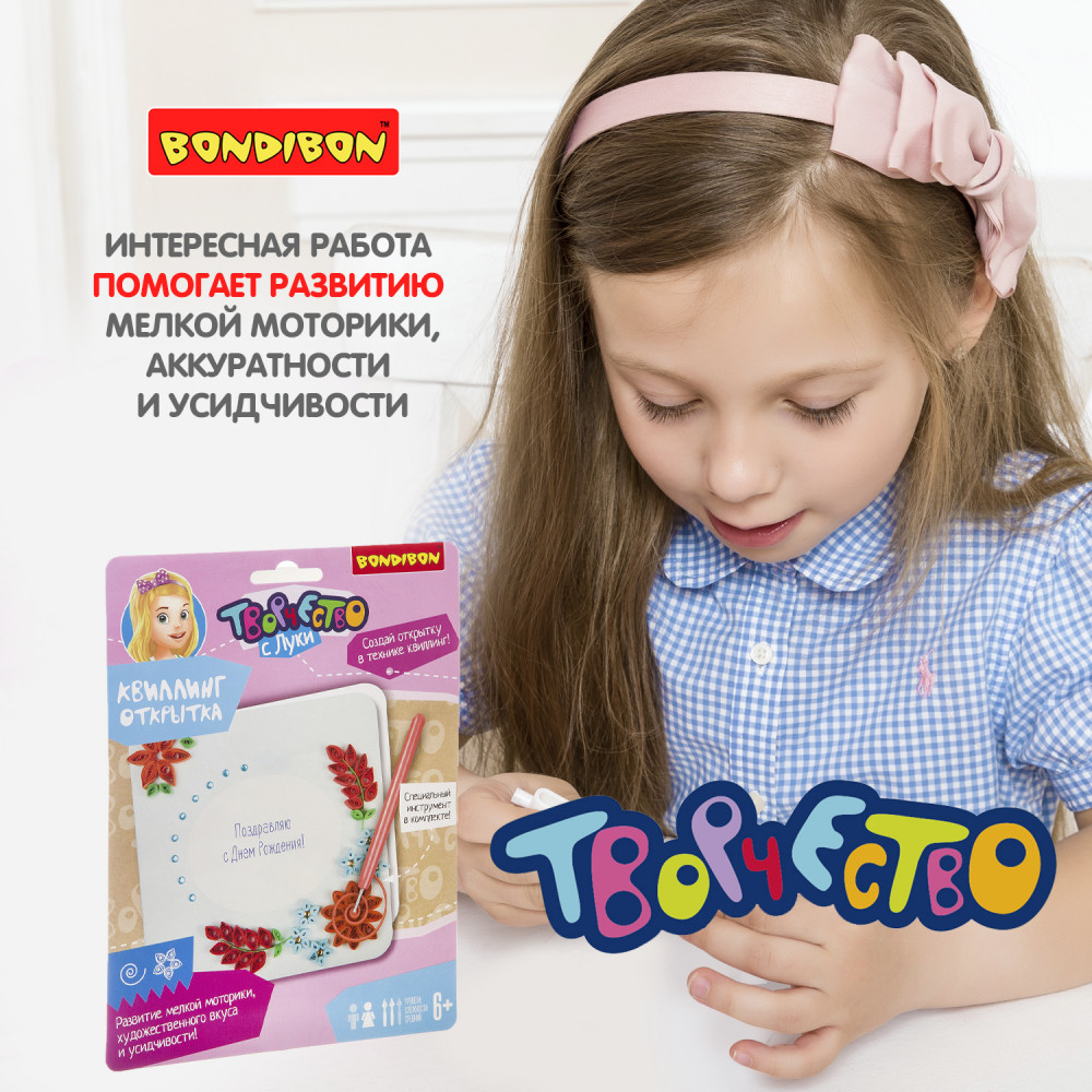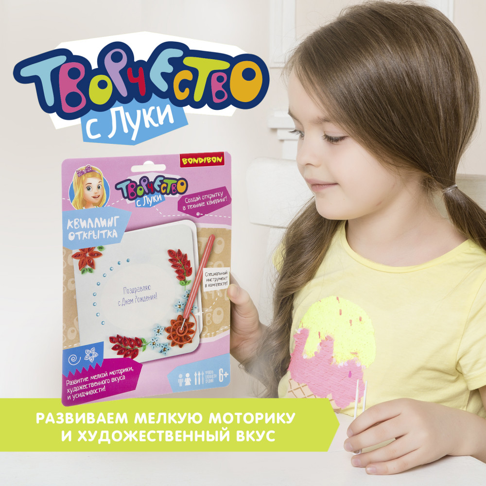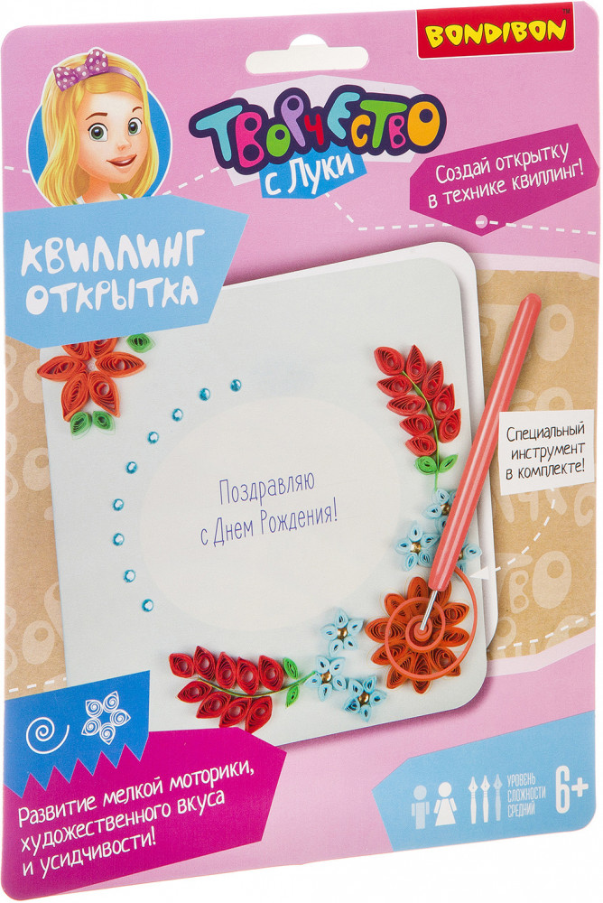 Bondibon Набор для квиллинга «Цветы»В данный момент этот товар отсутствует в продаже. Возможно, у нас найдется аналогичный или похожий товар здесь. Серия: Творчество с Луки Квиллинг или бумагокручение — увлекательный вид творчества по изготовлению плоских или объёмных композиций из скрученных в спиральки длинных и узких полосок бумаги. С помощью специального инструмента для кручения (в комплекте) ваш ребенок создаст замечательную открытку, состоящую из различных элементов и форм. При скручивании и склеивании мелких деталей развивается внимательность и аккуратность. |